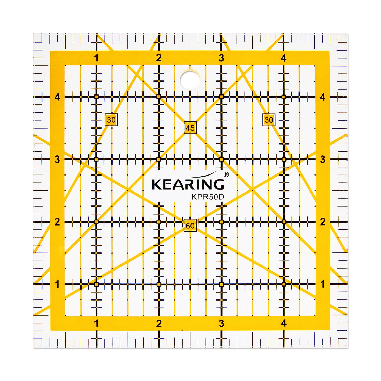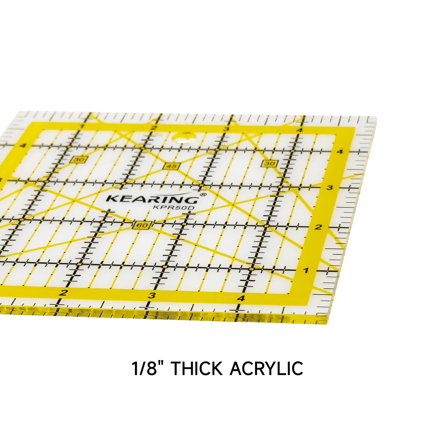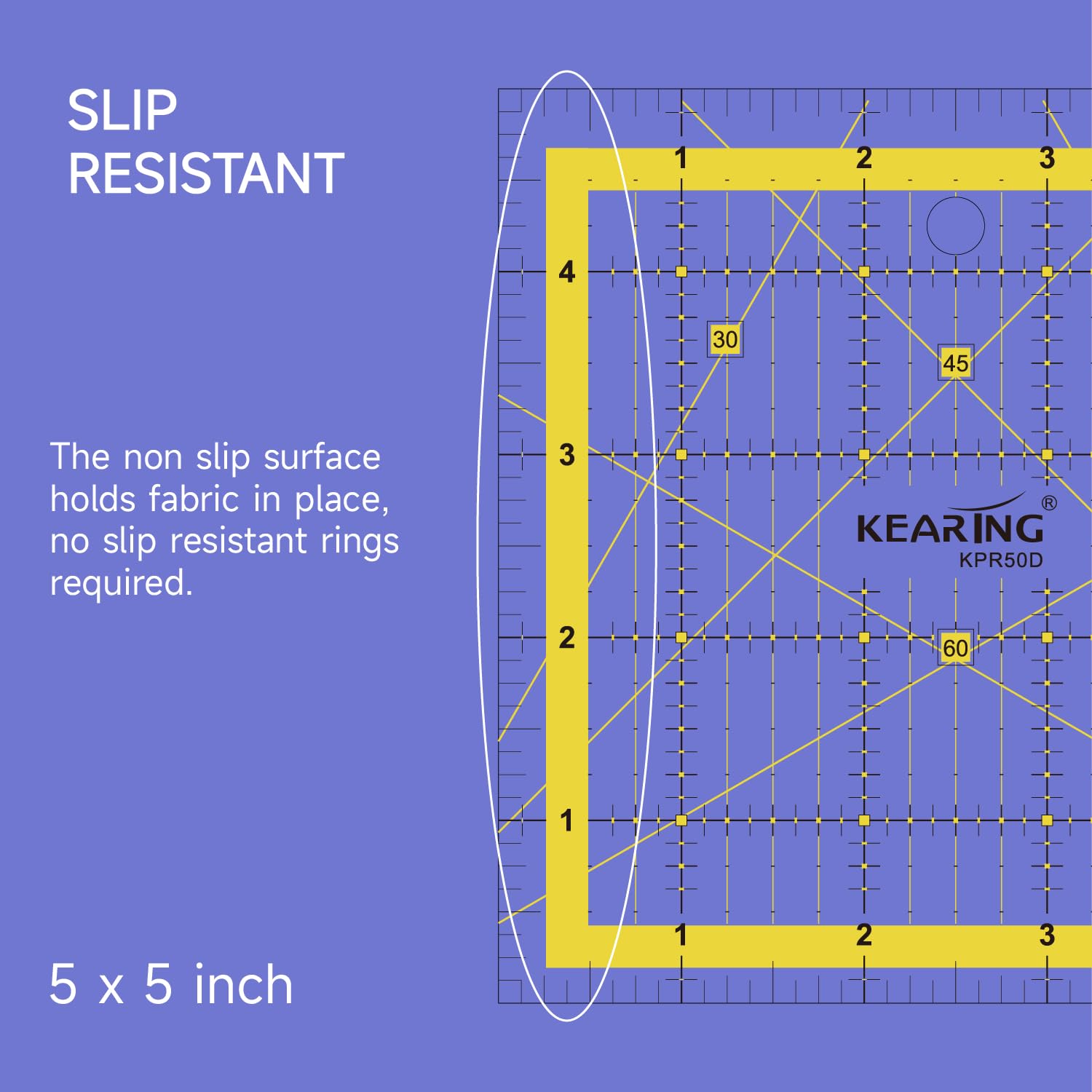 KERING Patchwork Quilting Ruler - 5x5 inch Non-Slip Acrylic Square Ruler for Foundation Paper Piecing, Bias Strips & Rotary Cutting, Durable Quilter's Tool with Anti-Slip Backing