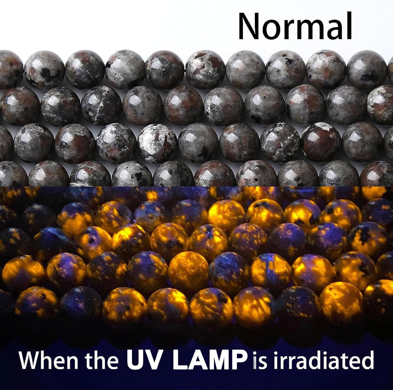 - 【Material】:Genuine Natural Flame Yooperlite Gemstones , It will glow under the irradiation of UV LAMP..Round Loose Stone Beads,Energy Stone Healing Power,Help activate the mind.