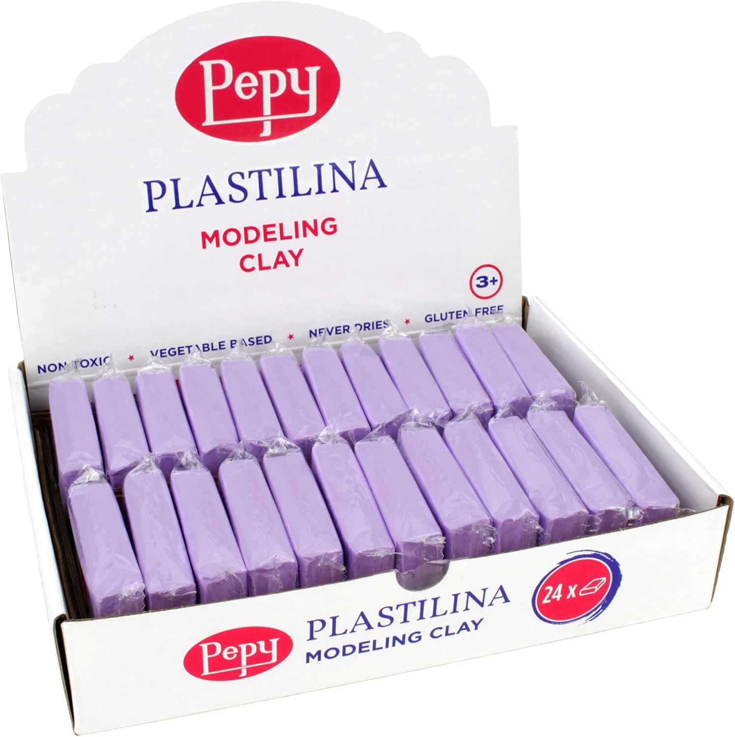 Pepy Plastilina Reusable and Non-Drying Modeling Clay; Set of 24 Bars, 1.4 Ounce Each, Perfect for Arts and Crafts Projects, Purple