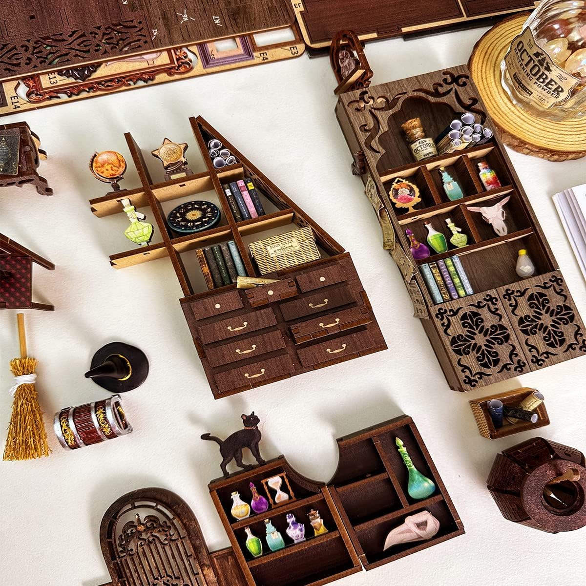 - 【Halloween Book Nook Kit for Adults- Magic Pharmacist】Everyone longs for the magic world and hopes to have mysterious powers. Let's take you into the magic house of the magic pharmacist, where there are crucibles, potion bottles, secret rooms, black cats, magic books, magic spells, and become a member of the magic world