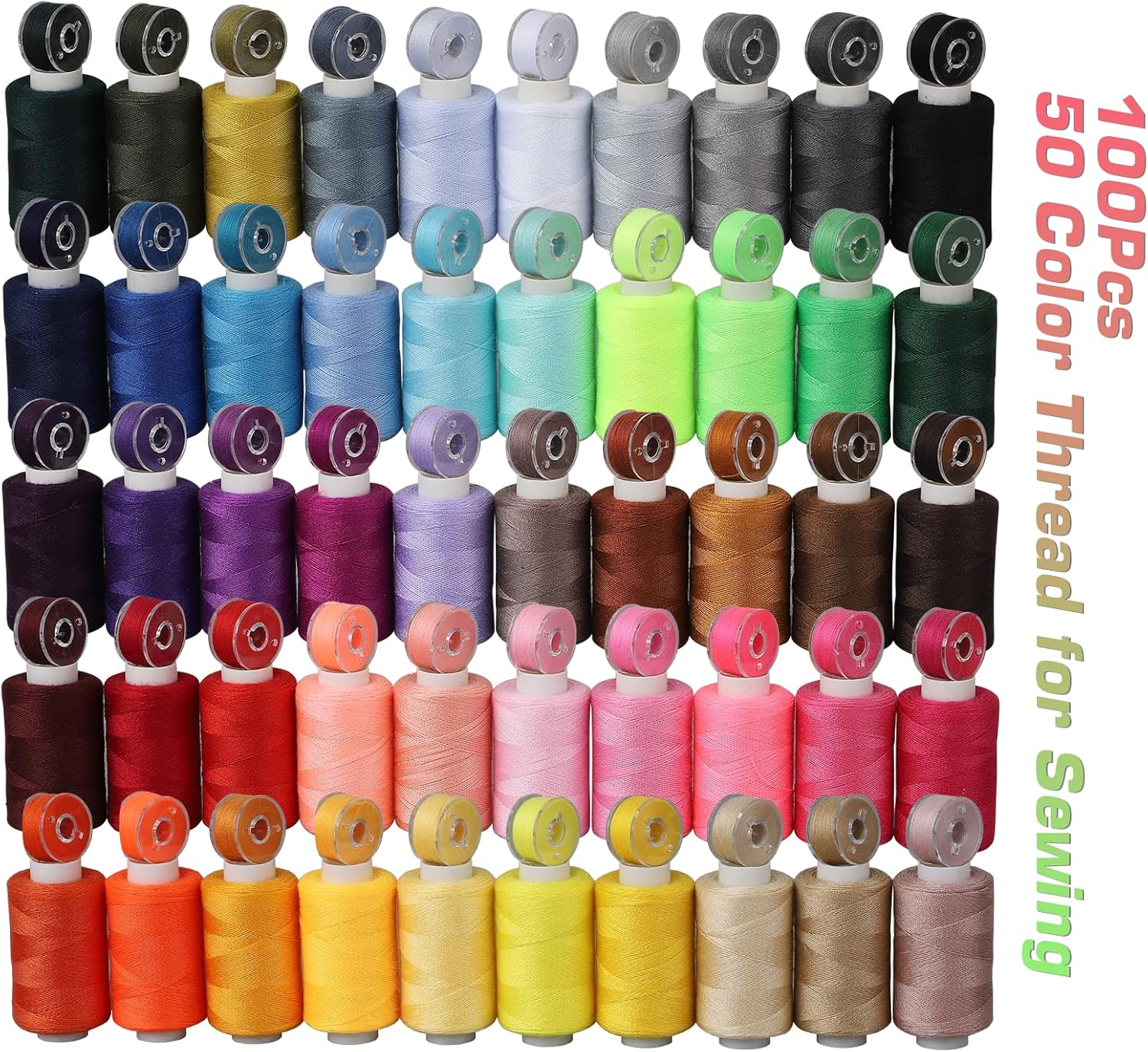 - Included Components : 50pcs Sewing Thread Spools and 50pcs Prewound Bobbins with case