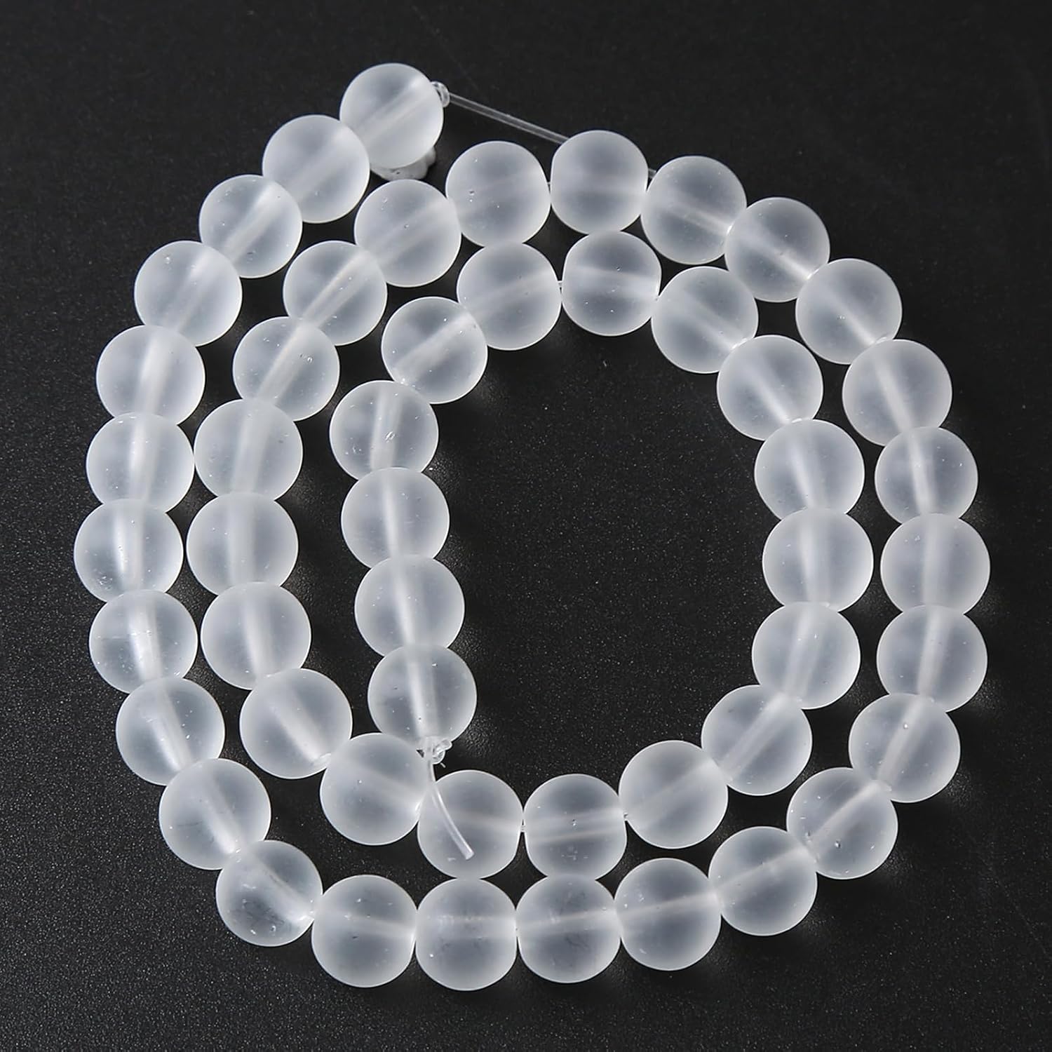 45pcs 8mm Frost White Crystal Glass Beads for Jewelry Making Round Loose Beads DIY Bracelets Necklaces Crystal Energy Healing Stone Beads 15"(8mm, Frost White Glass)