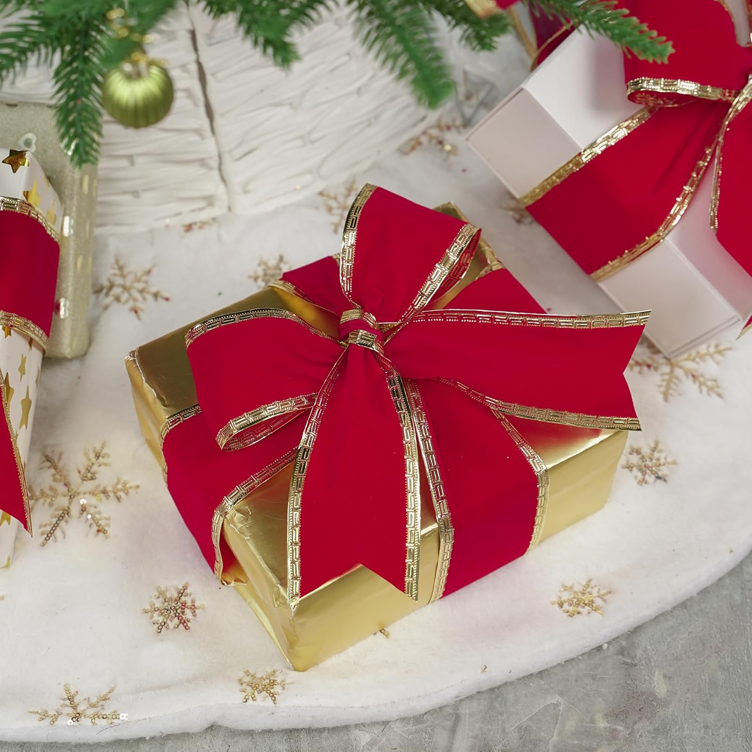 - The rich red color and premium-quality material offer endless possibilities for Christmas accents! The sewn wire-edged ribbon allows you to create beautiful bows that maintain their shape. Incorporate velvet red bows into your Christmas wreaths, column decorations, and wedding parties. Additionally, this thick ribbon is perfect for embellishing tree garland, complementing themed wreaths, wrapping holiday gifts, and adding a stunning touch to mailboxes, gift baskets, staircases.