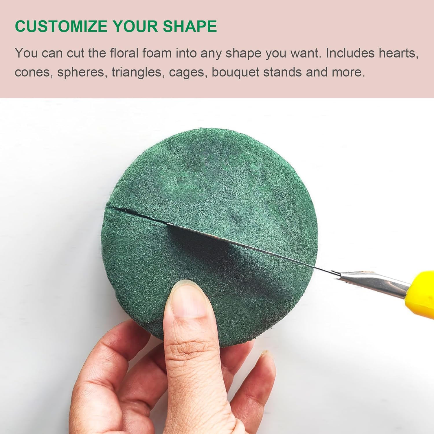 - Easy to Use:Our round floral foam blocks absorb water efficiently. Simply immerse the foam block in water for a few minutes until it becomes completely saturated. The foam block is also easy to cut, allowing you to shape it according to your desired arrangement. It adapts well to any container, making it user-friendly and convenient