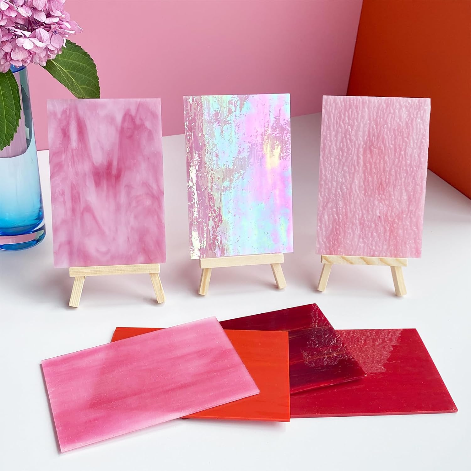 - Vibrant Colors: Pink and red collections stained glass sheets, mixed dark pink, light pink, dark red, light red, iridescent pink colors for glass mosaic crafts and glass projects