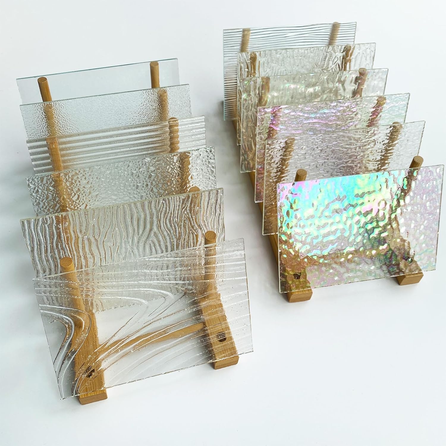 - Package Includes: 12 sheets mixed textures clear stained glass pieces, each stained glass sheet has the unique textures, the colors range from clear white to rainbow iridescent