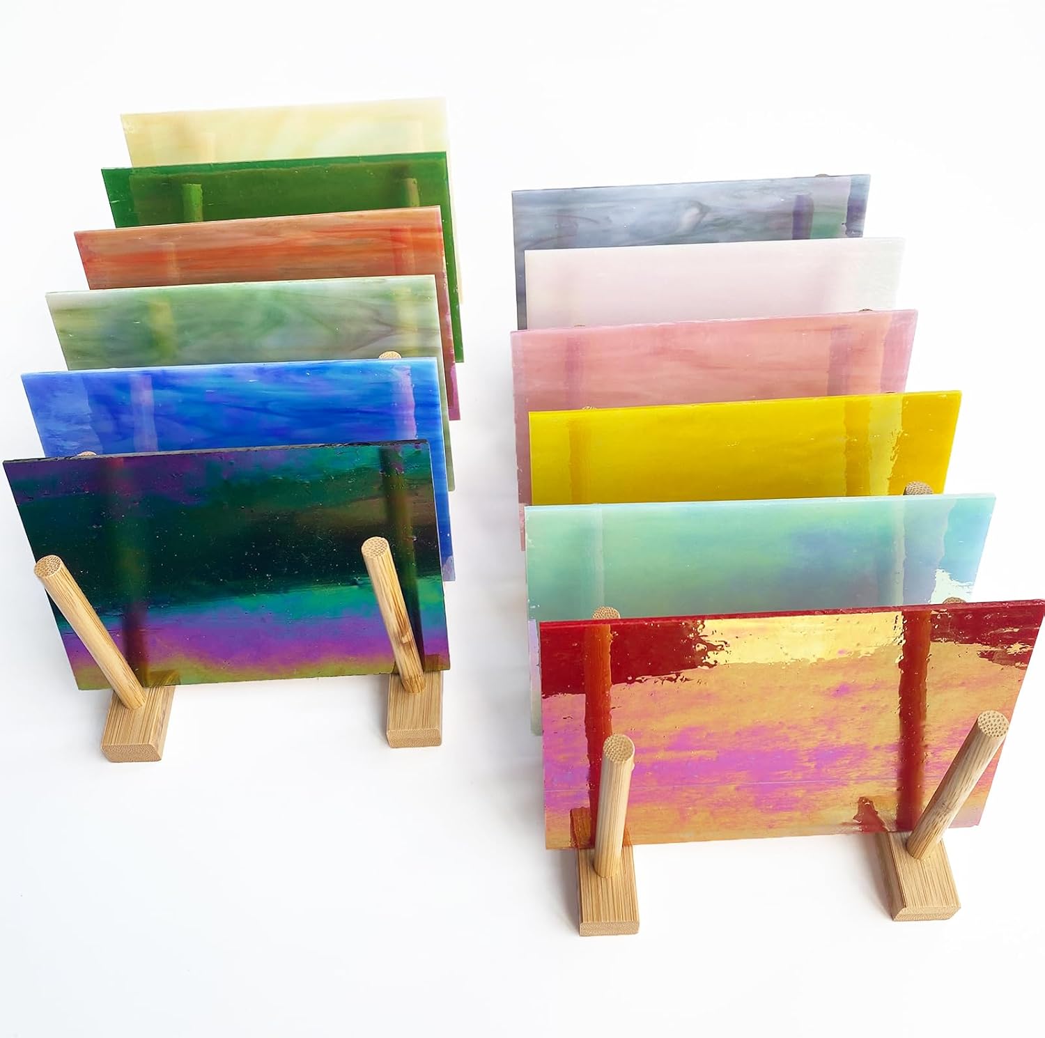 - Package Includes: 12 sheets rainbow iridescent stained glass sheets variety pack