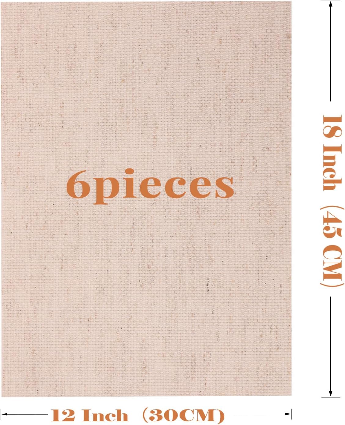 Caydo 6 Pieces Aida Cloth 14 Count Linen Cross Stitch Fabric Embroidery Fabric for Embroidery, Needlework, DIY Handicrafts, 12 by 18-Inch