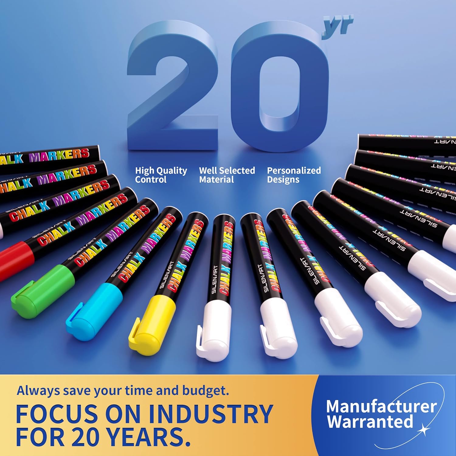 SILENART White Chalk Markers - 15mm Jumbo Tip Car Marker - Wide Thick Window Chalk Pen for Chalkboard, Window, Glass, Mirror, Blackboard
