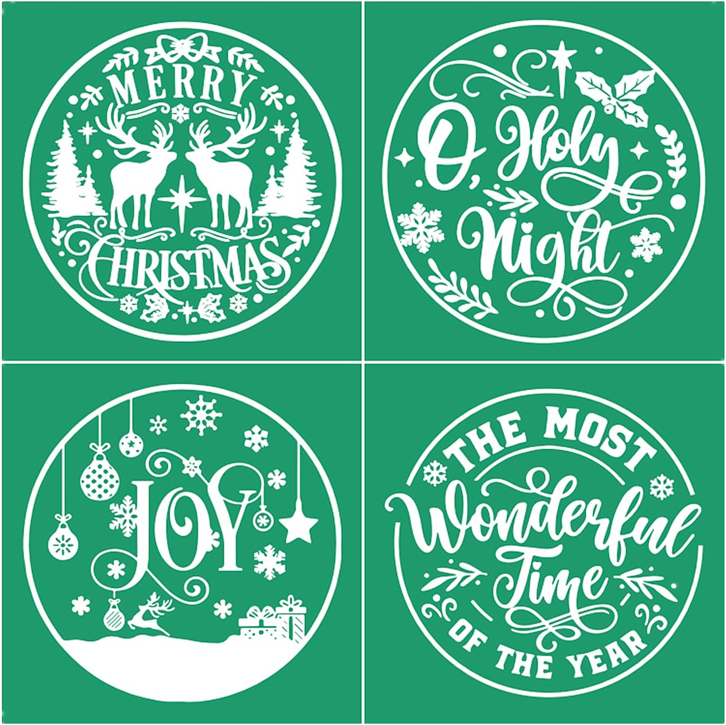 JAJADO Silk Screen Transfers Joy Merry Christmas Silk Screen Stencils Holy Night Adhesive Stencils for Painting on Canvas/Envelopes/Card/Wood Door Sign/Porch/Coffee Mugs/Glass/Christmas Decorations