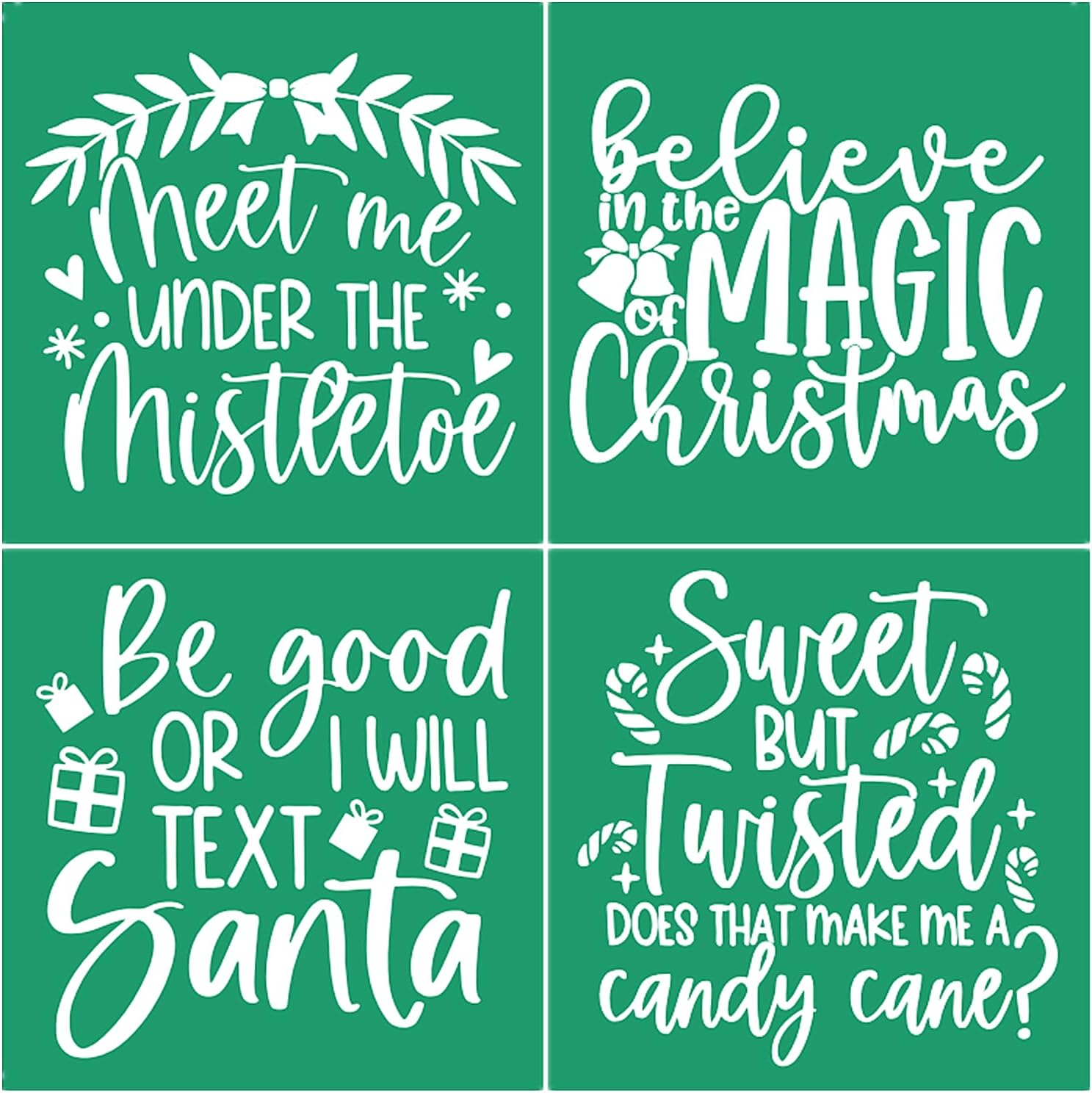 - 【Reusable Christmas Stencils】Christmas template includes:Meet ne under Mistletoe, Believe in the magic Christmas, Be good or i will text Santa, Sweet but twisted does that make me a candy cane stencils.Great gift for Christmas, Thanksging, New Year.Christmas decor stencils for Home/Garden/Office/Shcool/Coffee shop/Restaurant