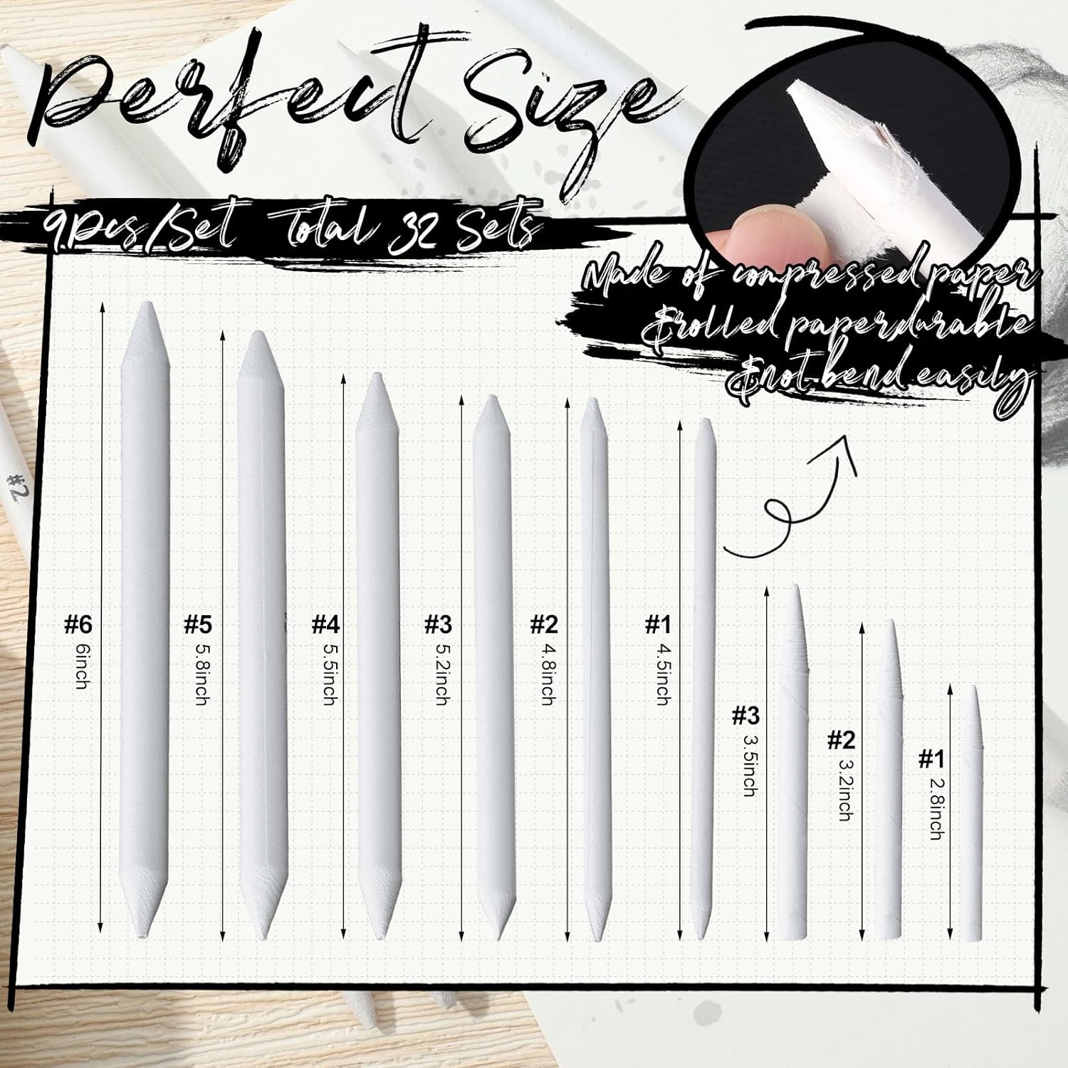 - Assorted Sizes: with a total of 9 sizes including #1 to #6 blending stumps and #1 to #3 tortillions, this set of 288 blending stumps and tortillions can meet your different needs, from sketching to shading, create smooth and soft patterns between colors and shadow in drawings and paintings