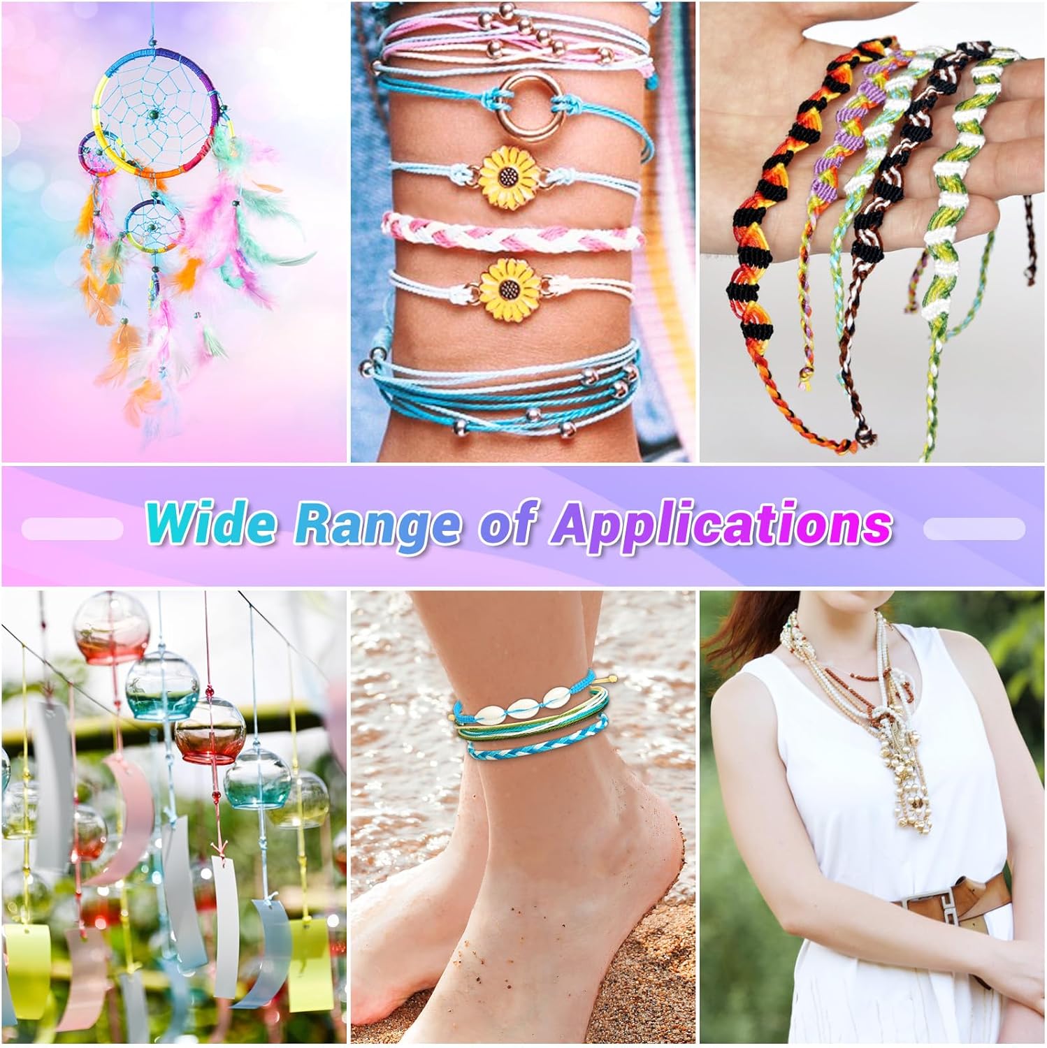 - wax thread for Bracelets: Package includes 20 rolls of wax string in various color, approx. 1 mm in diameter, and 25 yards per roll in length. Perfect for making bracelets, anklets, necklaces, beading, macrame knotting, jewelry making, crafting, wrapping and wind chimes