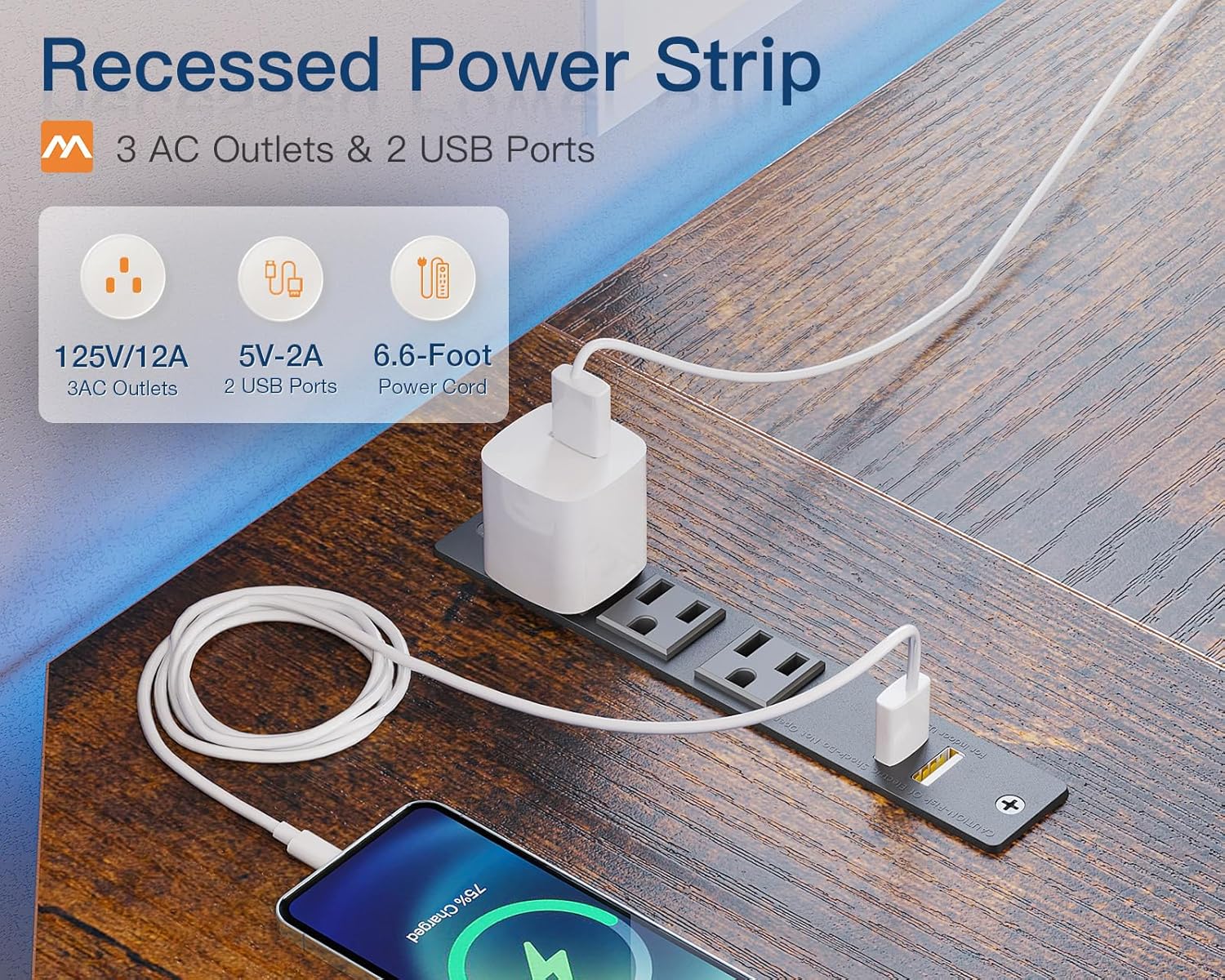 - ăUSB Charging Ports & Power Outletsă: The l shaped computer desk features 3 standard plug outlets and 2 USB ports, allowing you to conveniently charge your laptop, smartphone, tablet, printer and gaming devices while you work or play games.