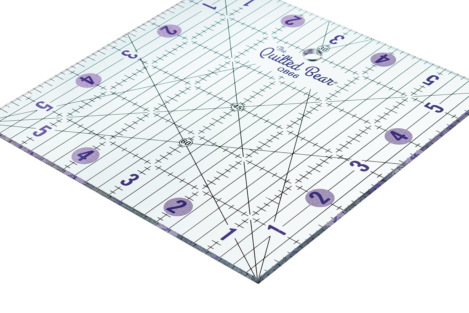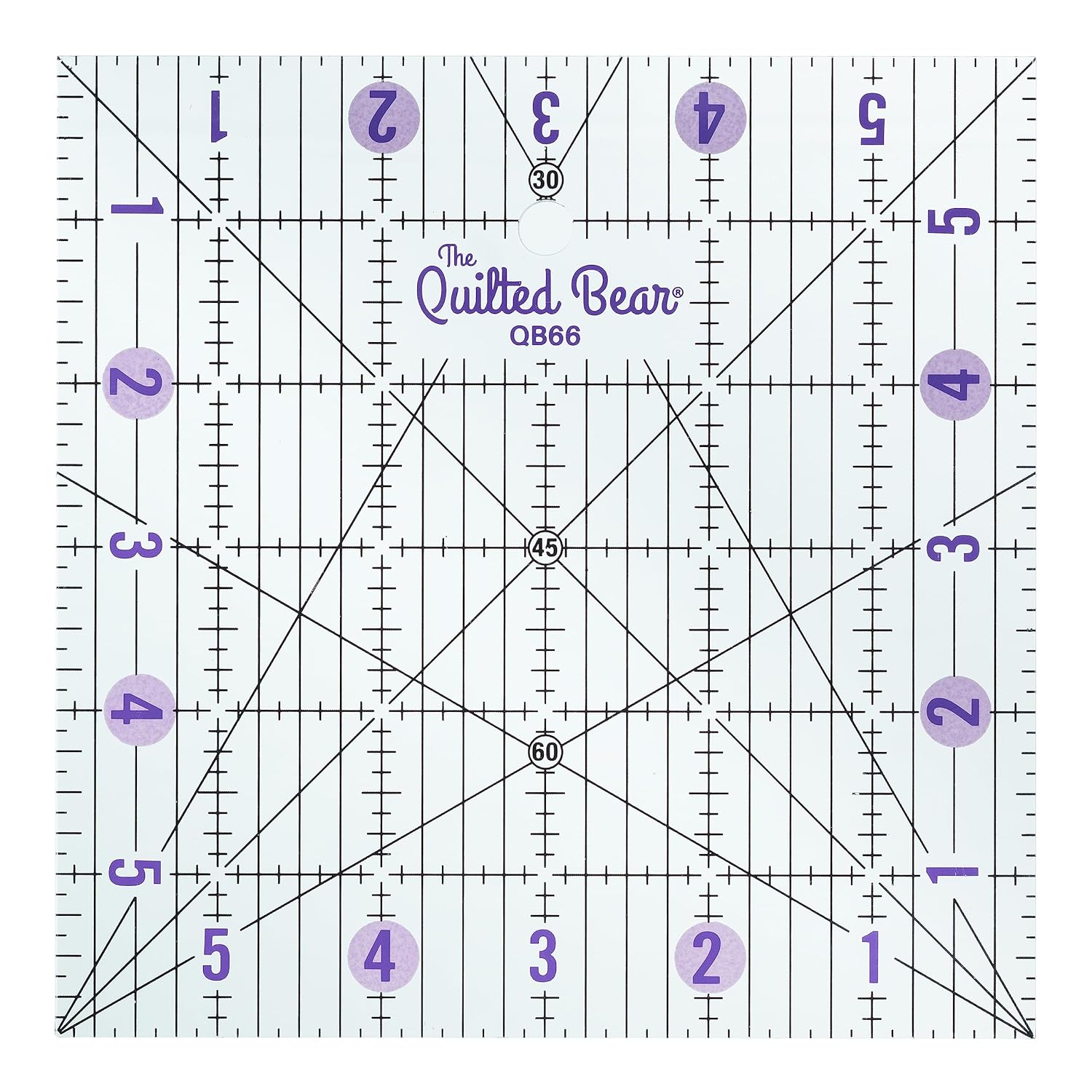 The Quilted Bear Quilting Rulers - Transparent Acrylic Non Slip Quilting, Patchwork & Sewing Ruler with Clear Black Lines & 30, 45 & 60 Degree Angles for Perfect Accuracy & Precision (6" x 6")