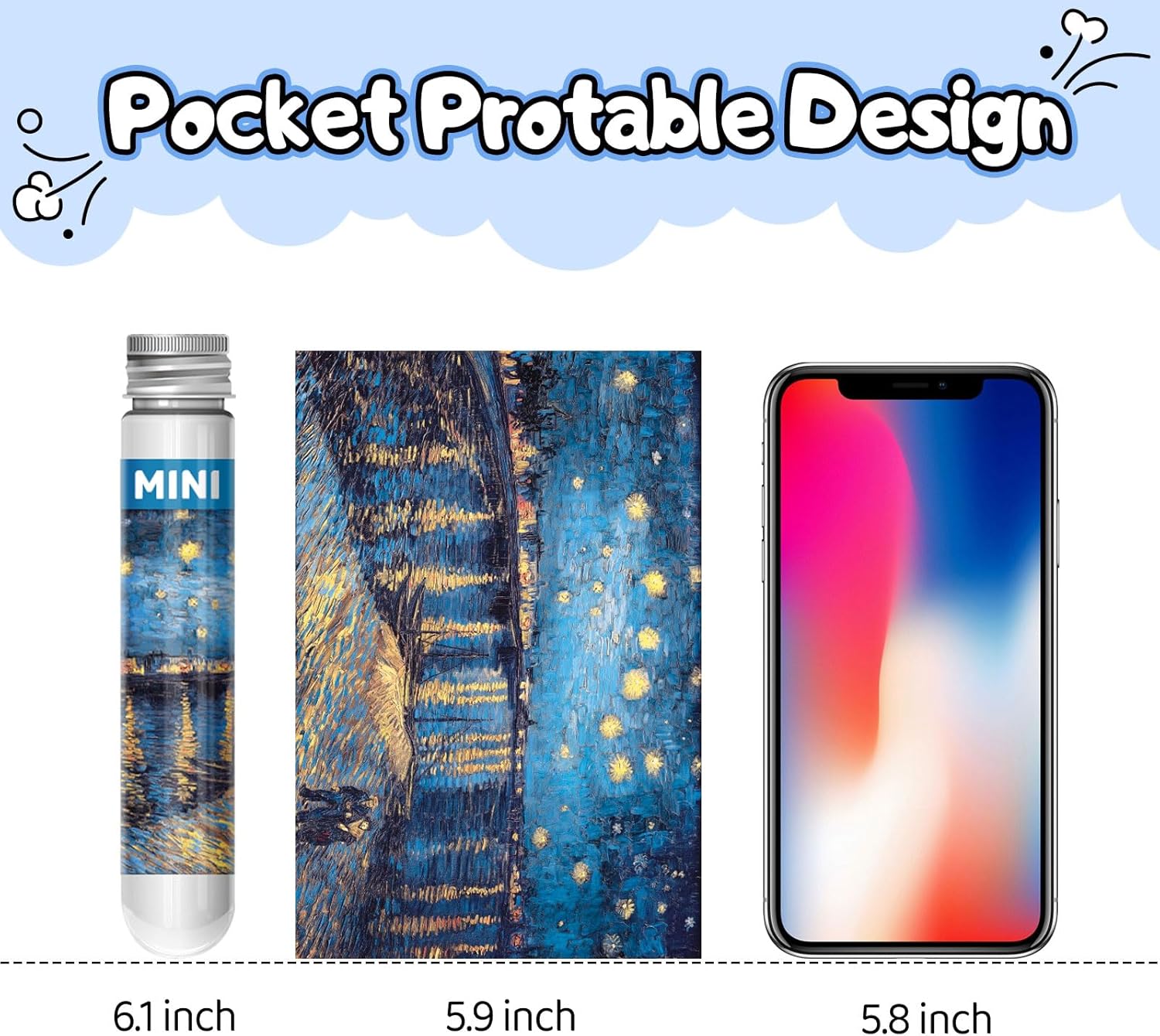 - PACKAGE INCLUDE: 3 PACKS mini jigsaw puzzles (starry night over the rhone, water lilies,kanagawa surf lane), 1 pack contains 150 PIECES. FINISHED SIZE: 6 x 4 inches / 15 x 10 cm.