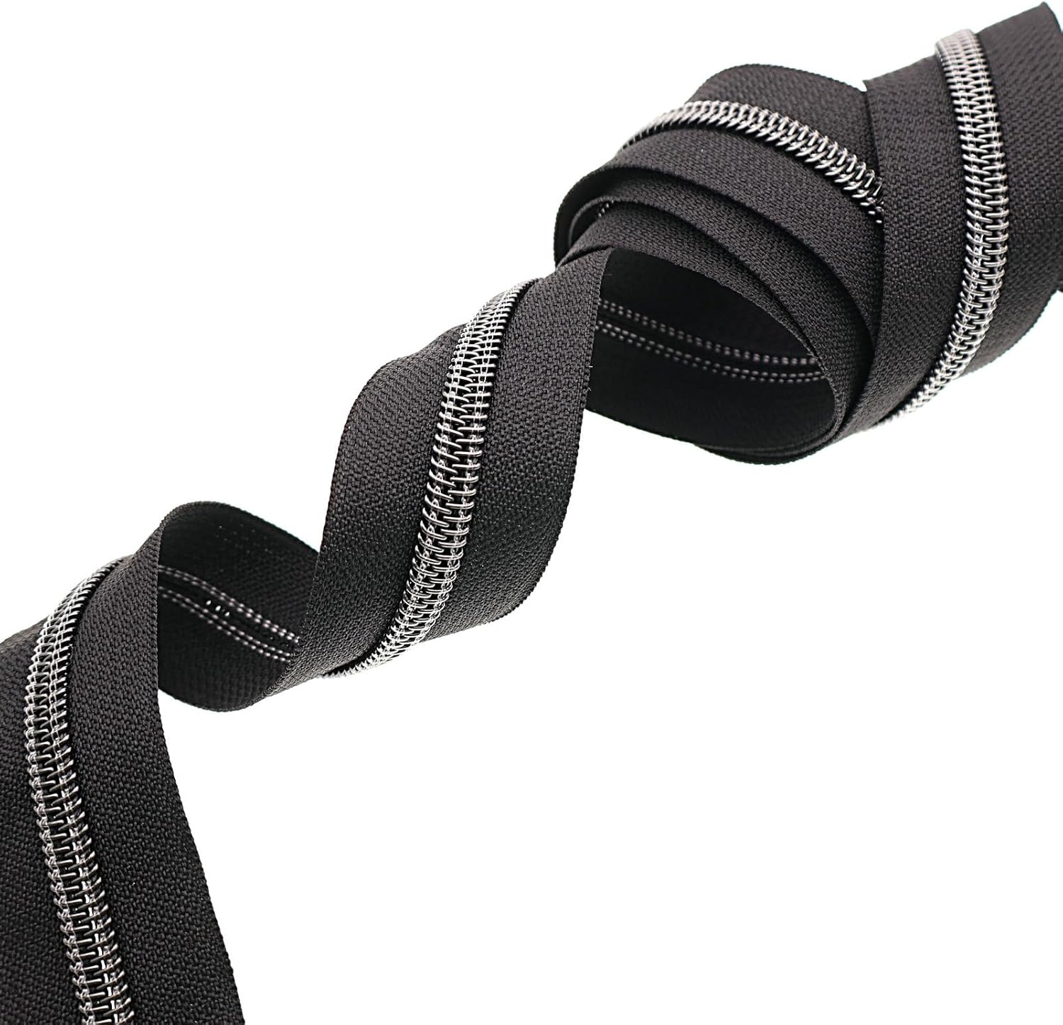 - #5 Black Nickel Teeth Nylon Coil Zippers By The Yard Bulk for DIY Sewing Tailor