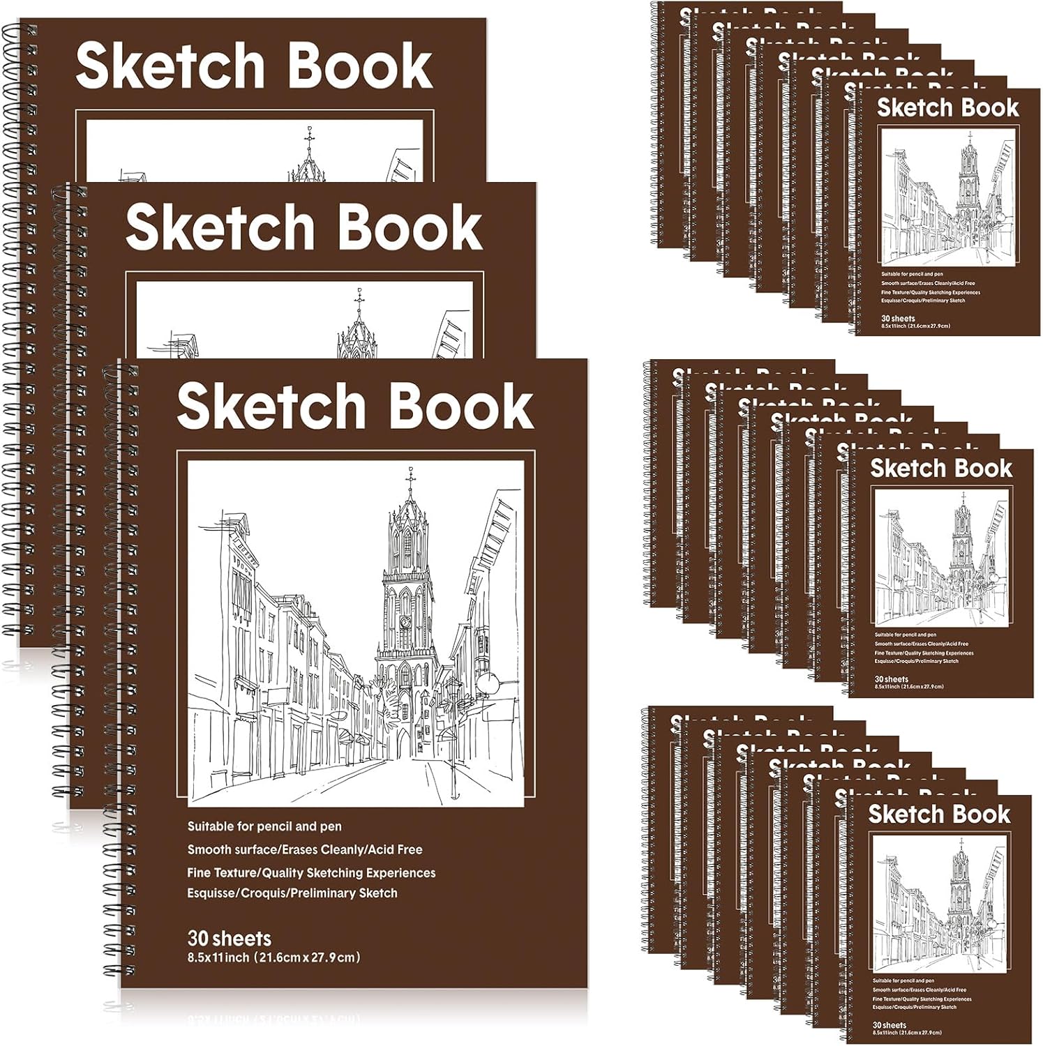 Qilery 24 Pcs 8.5 x 11'' Sketch Book Pads Bulk 30 Sheets Each Spiral Sketchbook 100 GSM Drawing Paper Acid Free Art Sketch Book Pack for Painting Sketching