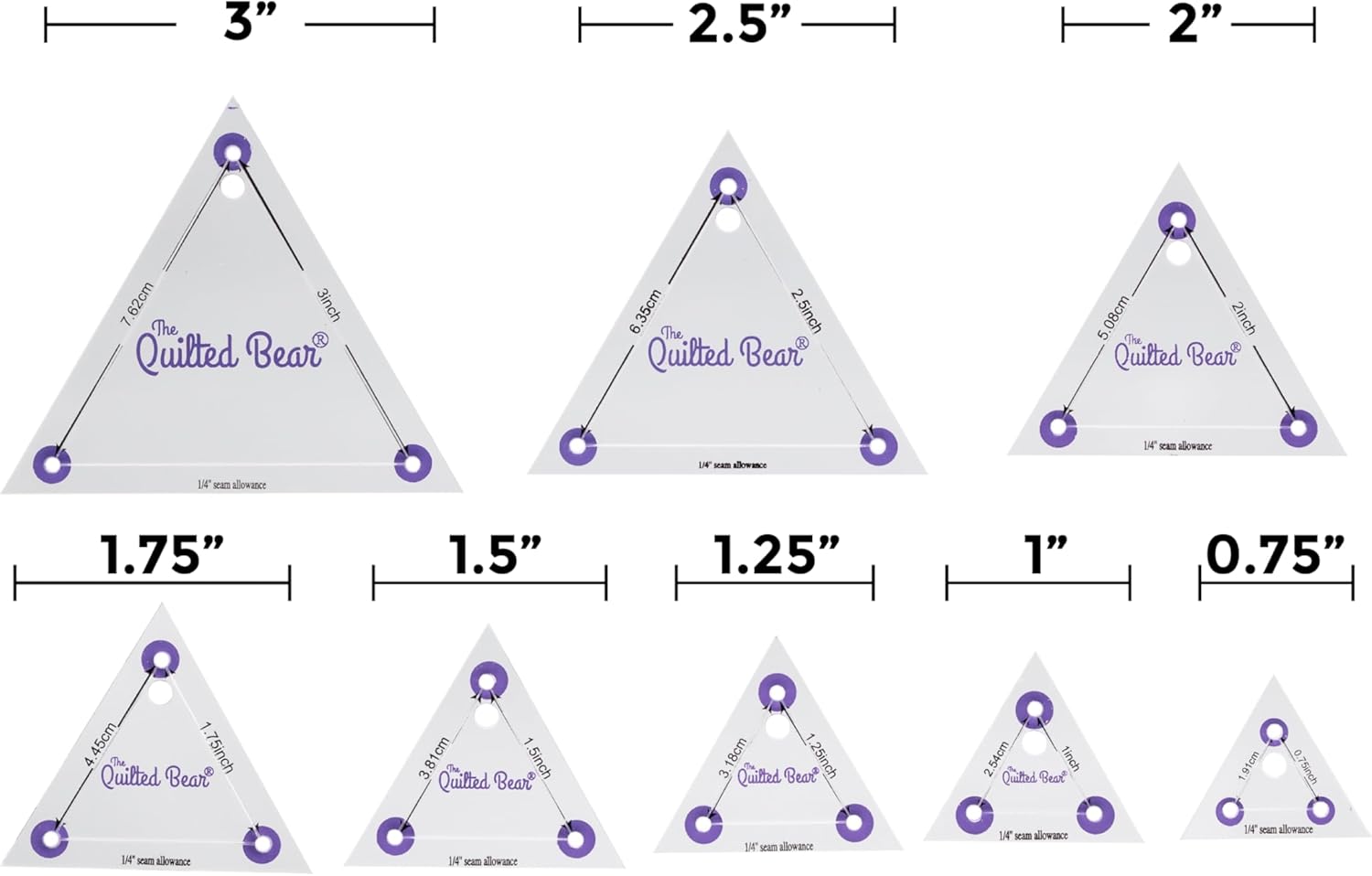 The Quilted Bear Triangle Quilting Templates – 8 Clear Non-Slip Acrylic Quilt Templates for Precise Fabric Cutting & Stress-Free Machine Quilting - Ideal for Quilt & Sewing Supplies (¾–3")