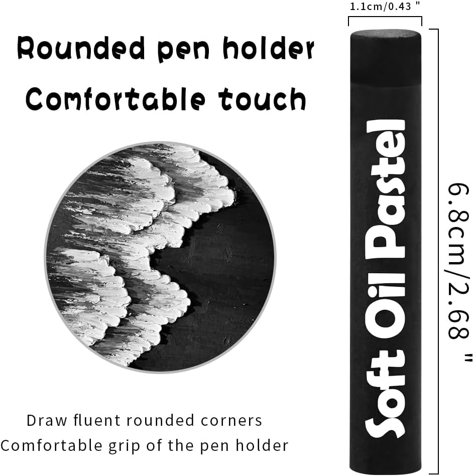 - White and Black Color Oil Pastels Sets:Oil pastels are individually packaged, with a total of 12 sticks.Allowing you to achieve a unique texture sensation that's perfect for painting, drawing, or coloring.