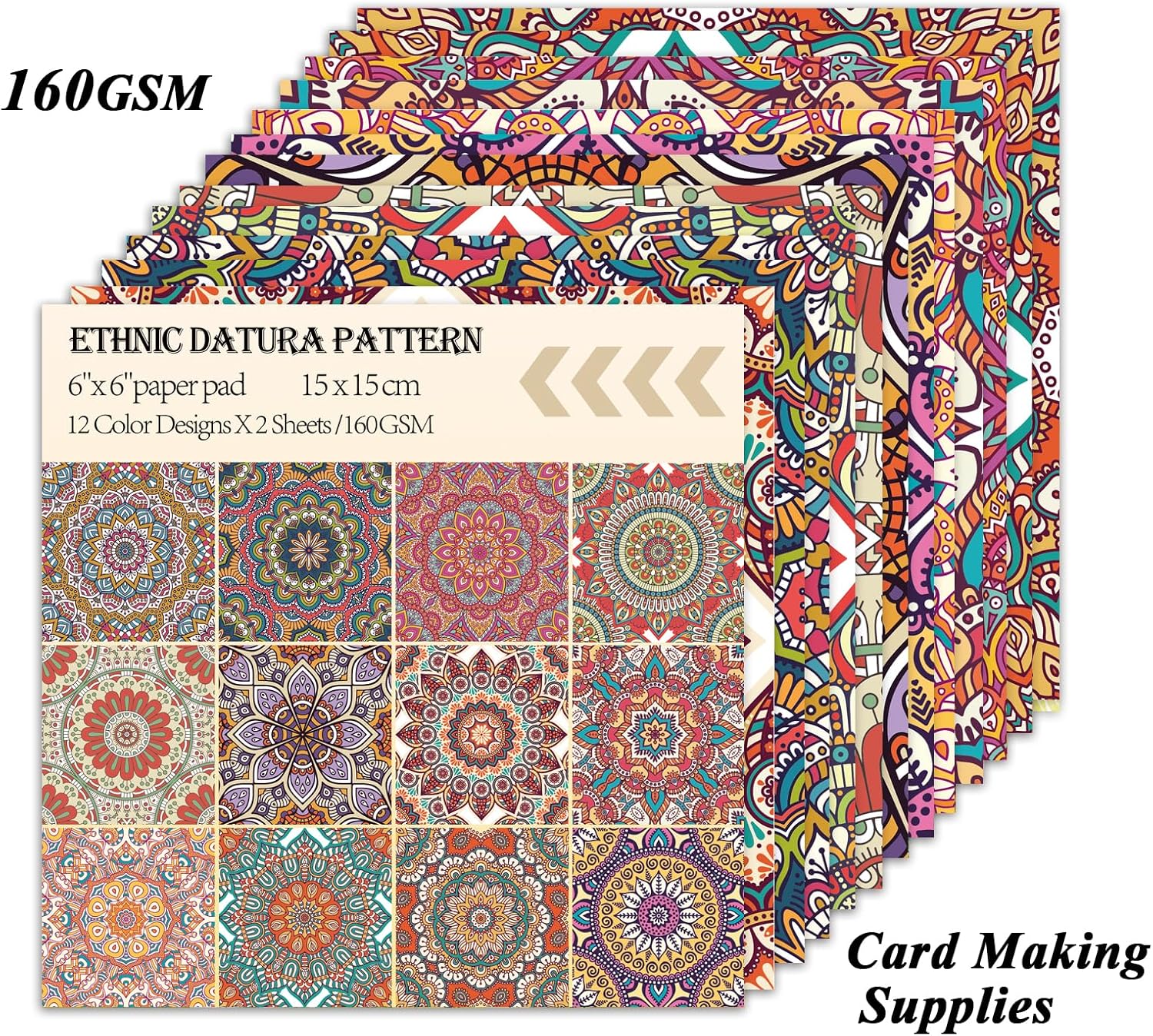 24 Sheets 12 Designs Scrapbook Paper Pad,6"×6” Single-Sided Decopodge Craft Cardstock Paper,Scrapbooking DIY Decorative Background Cardmaking Supplies.Datura