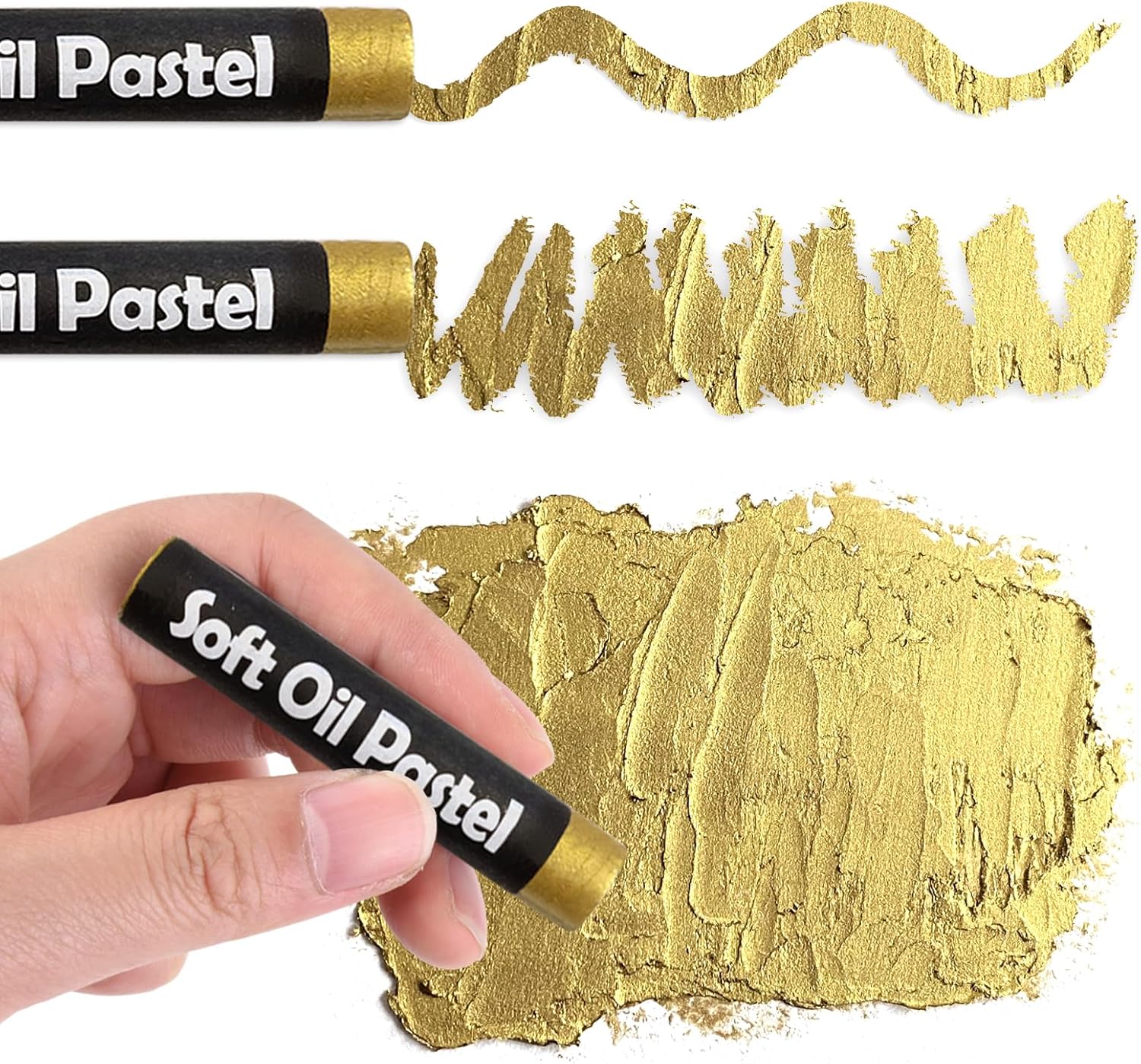 qianshan Soft Oil Pastels Set of 5 Single Colors,Non Toxic,Soft Texture Vibrant and Creamy Oil Crayons Pastels Art Supplies For Professional Artists Beginners Drawing.Gold