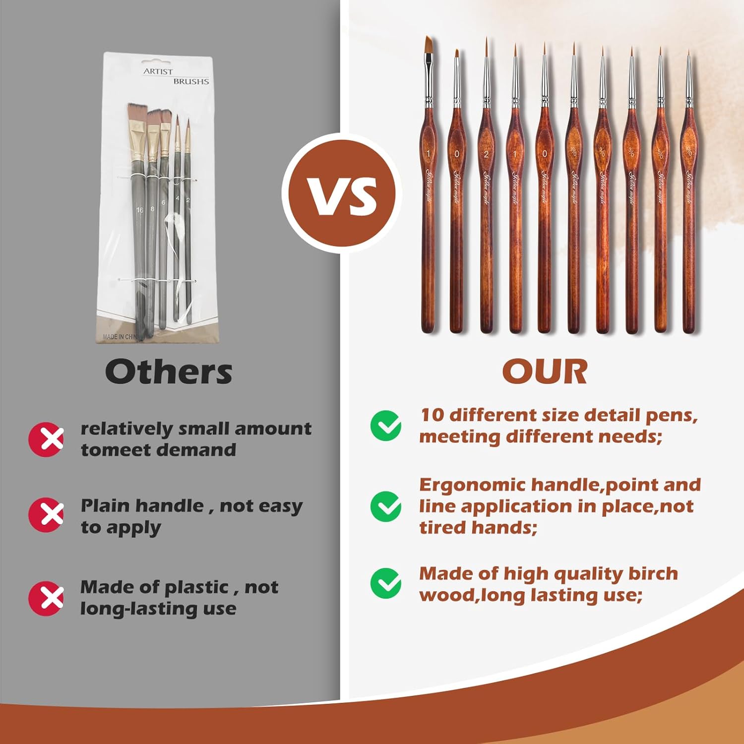 - HIGH-QUALITY NYLON HAIR: Golden Maple fine tip paint brushes are made of flexible yet sturdy nylon hair that won't deform with a 90Β° angle. Excellent elasticity and good water absorption ensures great painting effects.