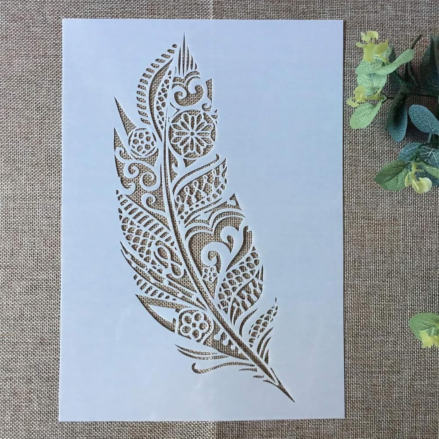 TIAMECH A4 Mandala Feather Stencil for Painting on Wood Reusable Big Feather Layering Stencil DIY Scrapbook Coloring Decorative Size 8.3 x 11.7inch Template