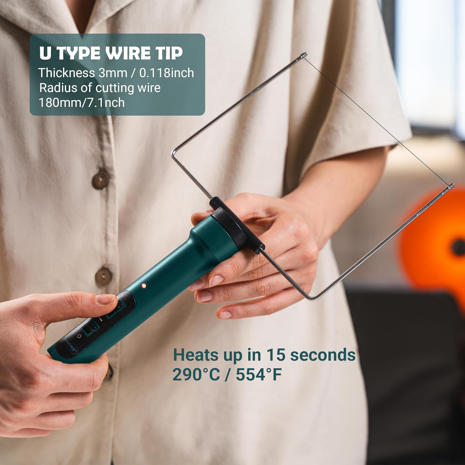 - Our advantages: Upgraded 15W Handle with Temperature Controller and 400°C Max. Temperature, U-type Hot Wire Tip with Wider Cutting Zone(180mm x 130mm), 10m Replacment Wire, Table Fixation, Ergonomic & User-Friendly Design