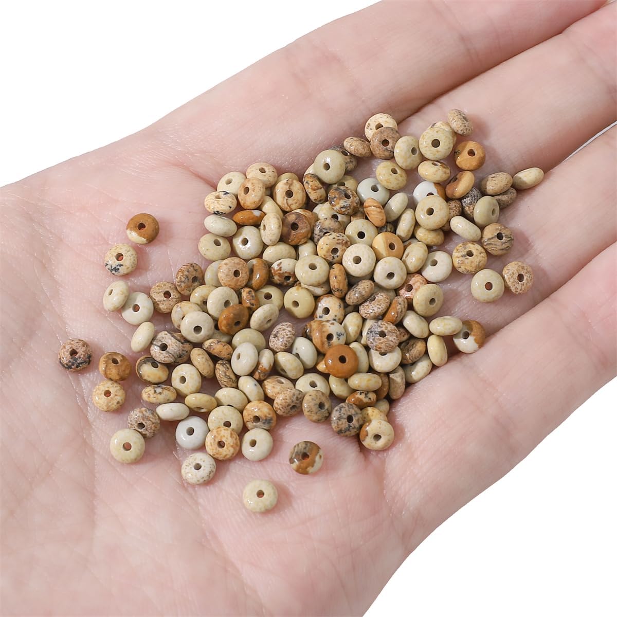 Natural Brown Picture Disk Stone Beads 4x2mm 160pcs Rondelle Loose Semi Gemstone Beads for Jewelry Making Design