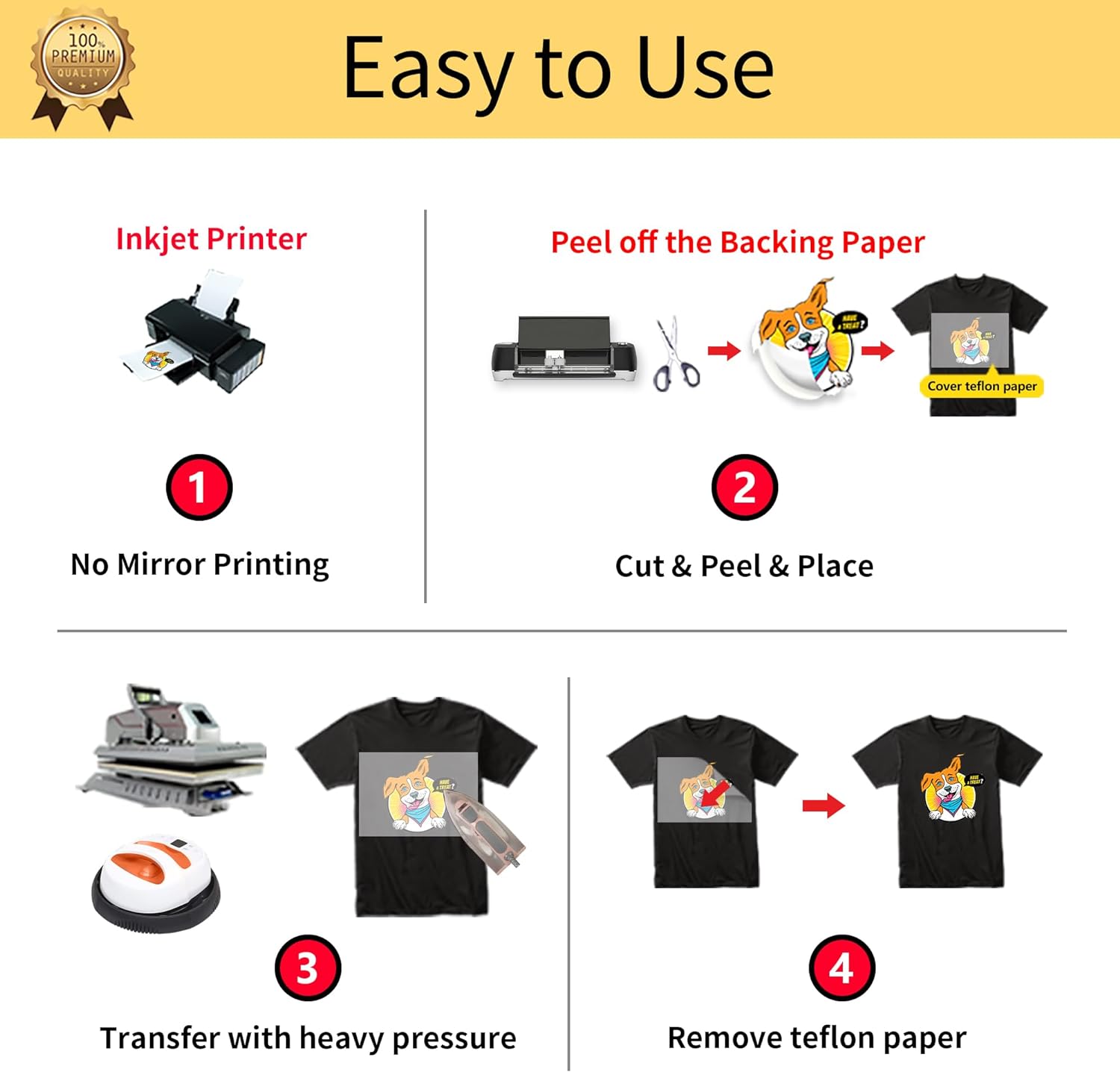 - 💕REQUIREMENTS: Inkjet Printers (such as HP, Brother and other brands) | Pigment Ink or Dye Ink (Do not use Sublimation Ink ) | Scissors or Cutting Machine | Iron, Easy Press or Heat Press machine | Teflon Paper (included in the pack).