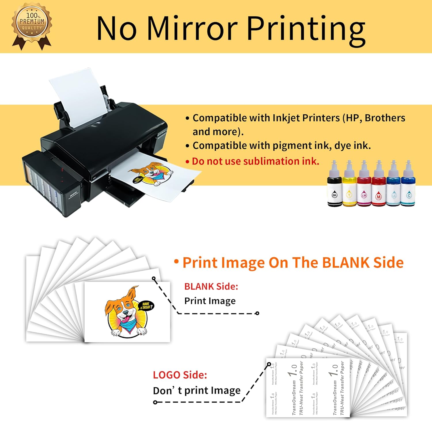 - 💕WHO ARE WE: We are a leading manufacturer with 20 years R&D, production and OEM/ODM experience (for many premium global brands) in heat transfer paper, waterslide decal paper, tattoo paper and more. TransOurDream is one of our brands which is committed to offer high quality products for both home and professional users. Meanwhile we can help you build your own brand and print your logo on the backing of transfer paper. Any questions please don't hesitate to contact us.