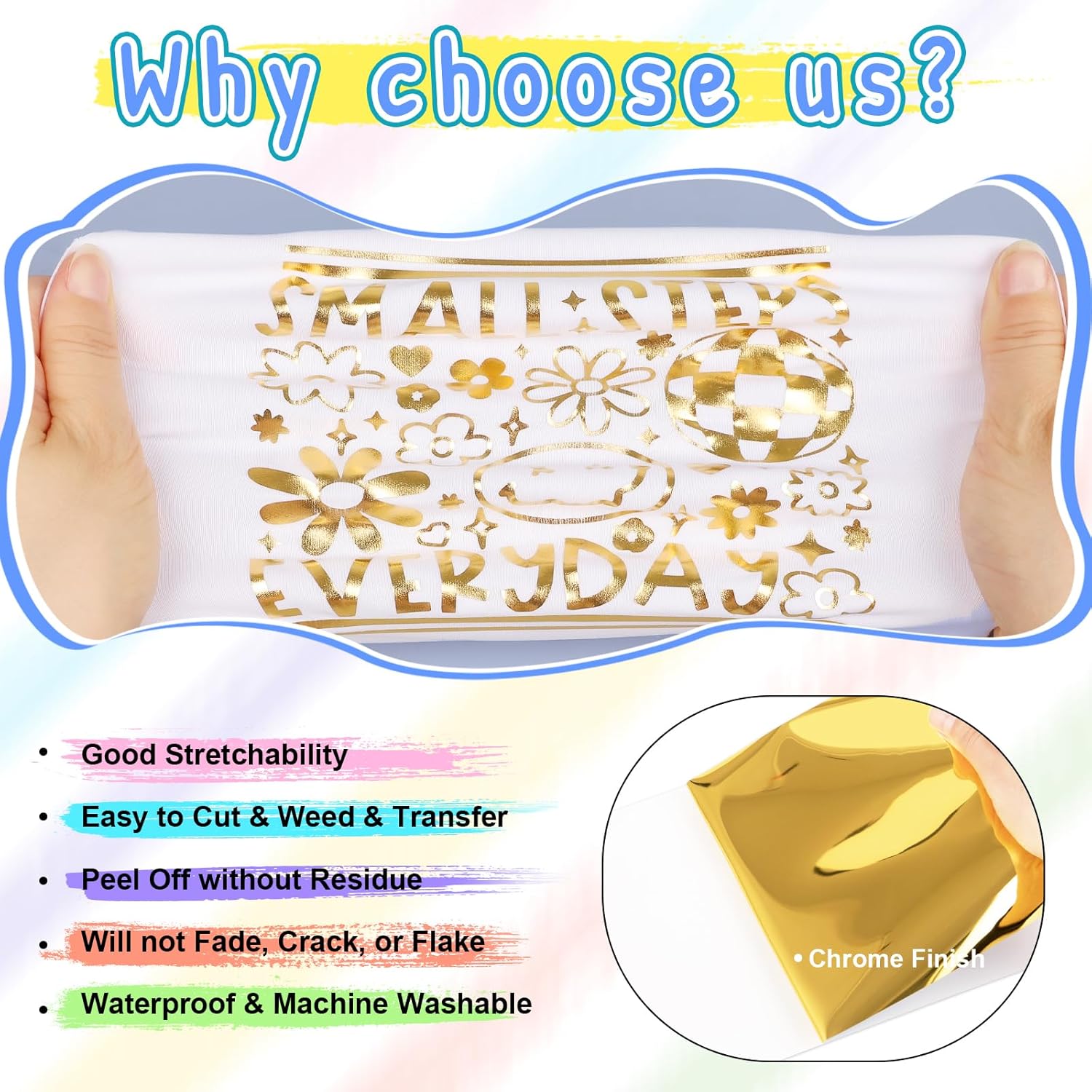 VINYL FROG Metallic Foil HTV Vinyl Roll 12" x12ft Gold Chrome Heat Transfer Vinyl Iron on Vinyl Easy to Cut & Weed DIY Heat Press Design for T-Shirts