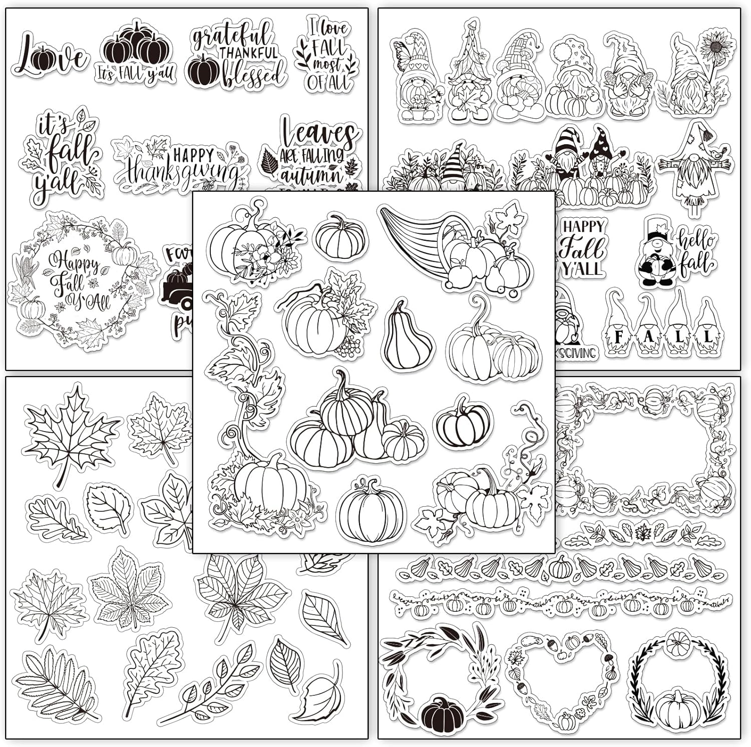 - Fall Thanksgiving Patterns - These clear stamps feature various fall Thanksgiving themed elements, such as pumpkin, autumn leaves, gnome, thanks words, etc, delicate and elegant, full of holiday feelings, will be great decoration to match with various cards.