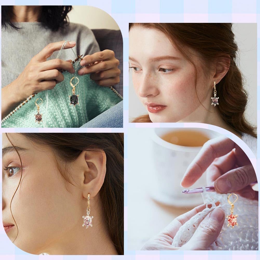 - β€[SIZE]: Locking stitch marker: about 40mm(1.57inch) long, tortoise charms: 23.5~24.5x13.5~14.5x4.5~5mm(0.93~0.96x0.53~0.57x0.18~0.2inch), hoop earrings: 16x10x1.7mm(0.63x0.39x0.07inch), 5 colors, 4pcs/color, 20pcs/box.