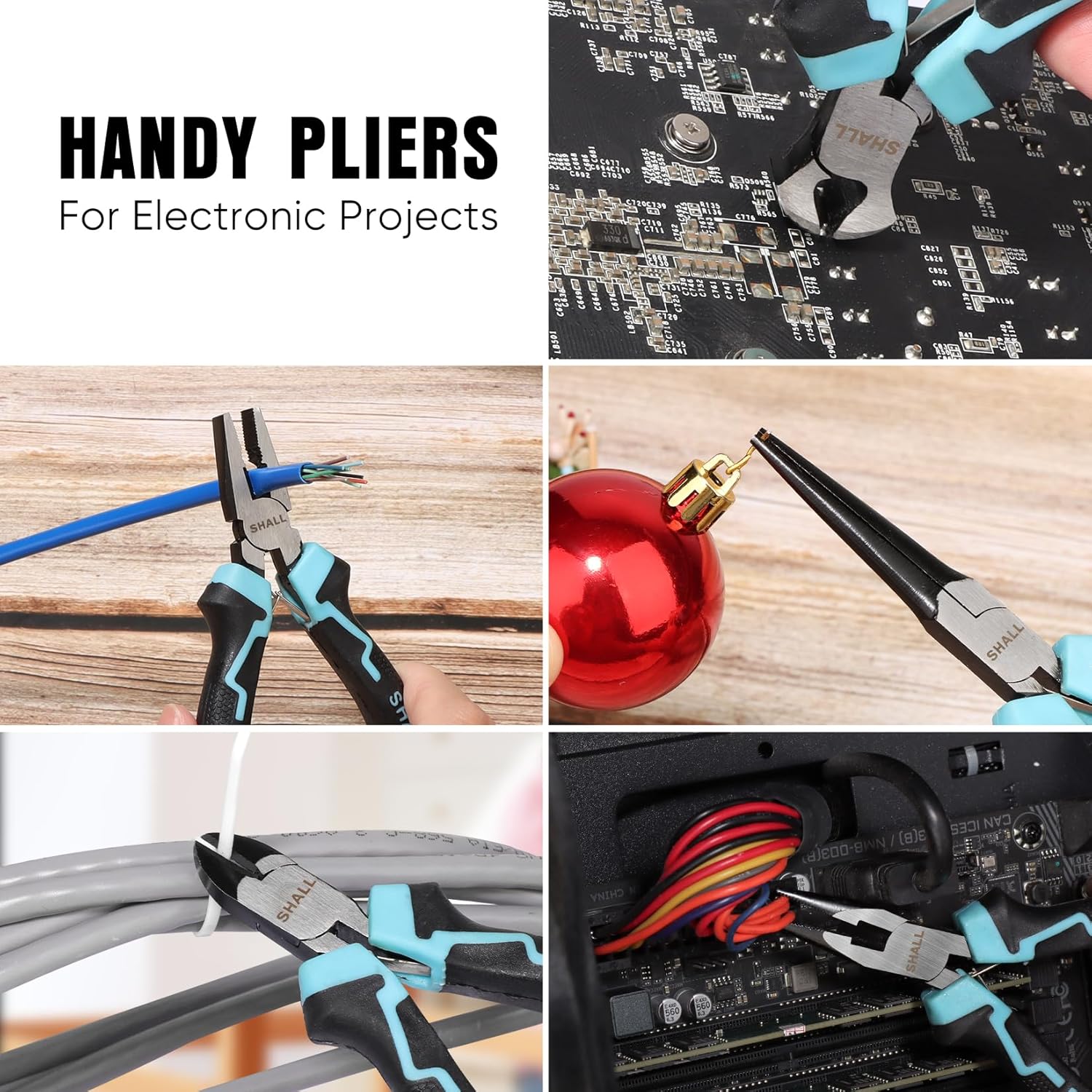 SHALL Mini Pliers Set, 6-Piece Small Pliers Tool Set Includes Needle Nose, Long Nose, Bent Nose, Diagonal, End Cutting and Linesman for Making Crafts, Electronic Repairing & Jewelry with Pouch