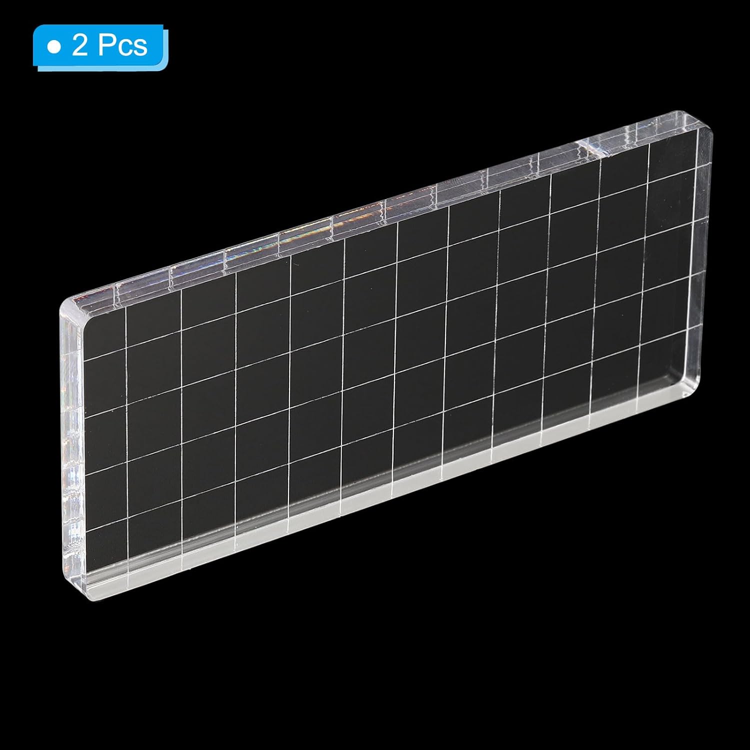 PATIKIL 5" x 2" Acrylic Stamp Block, 2 Pack Clear Stamping Block with Grid Lines Decorative Mounting Blocks Square for Scrapbooking DIY Crafts Card Making
