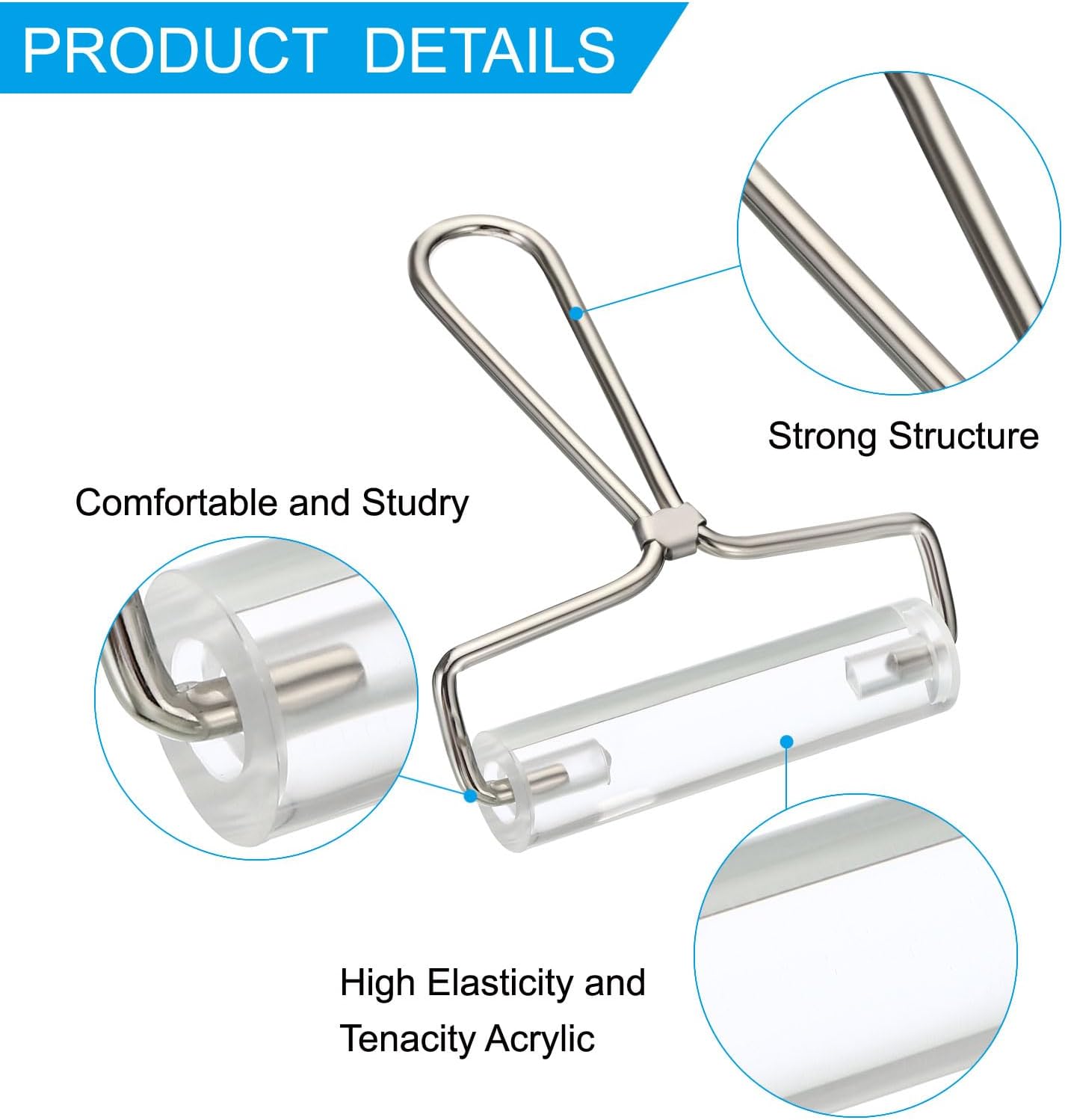 - Advantage: 1. The rolling part is made of acrylic, and the rolling surface is smooth and non-stick, and good for distributing clay, ink, or glues evenly, providing a smooth and clean finish in printing and stamping. 2. The metal handle provides a comfortable and sturdy grip during use.
