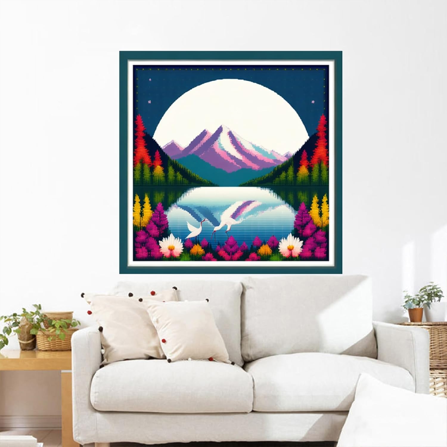 Joyhoor Cross Stitch Kits for Beginners Stamped Cross-Stitch Supplies Needlework preprint Embroidery Kits for Adults DIY Needlepoint Kits Embroidery Patterns 11CT-Swan Lake 17.7x17.7 inch