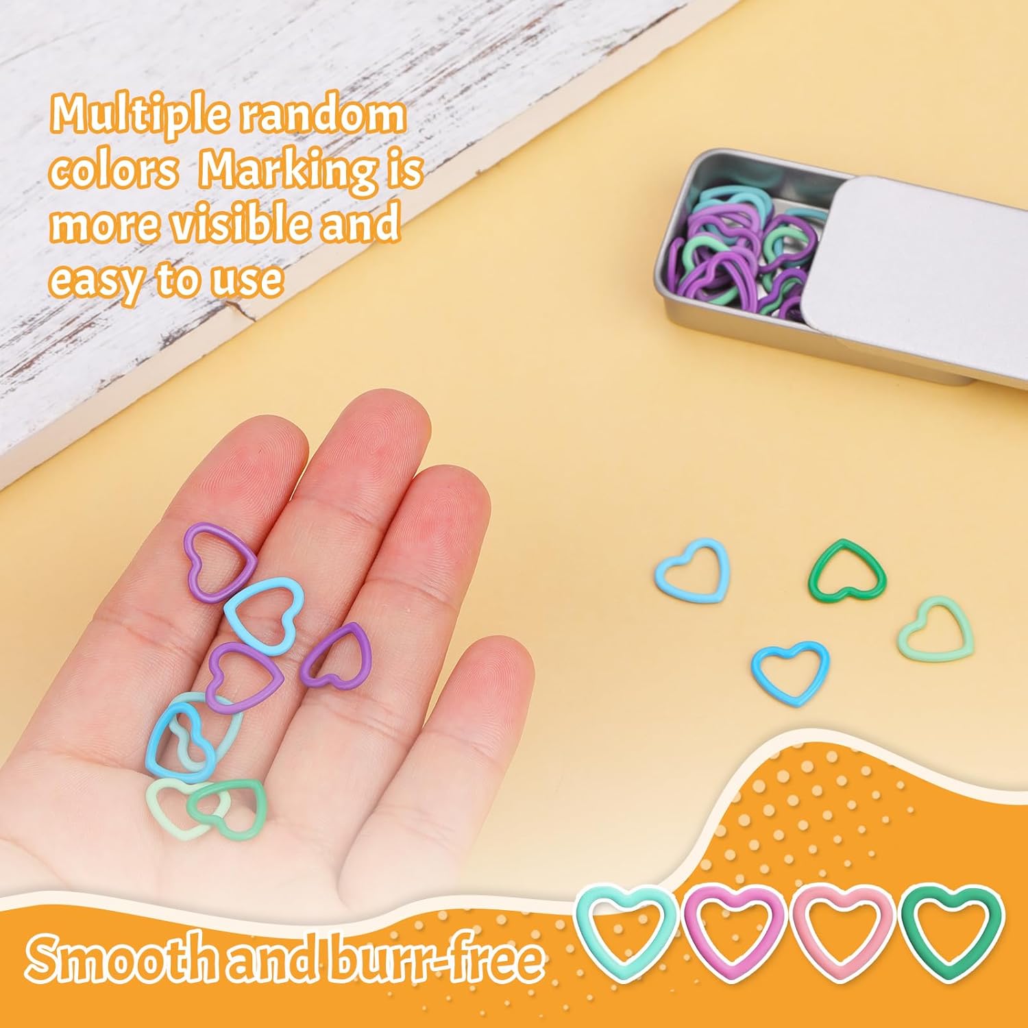 - Easy To Store and Carry:The stitch markers is paired with a small metal box for easy storage and portability.It can store all marker buckles and other small accessories of appropriate sizes