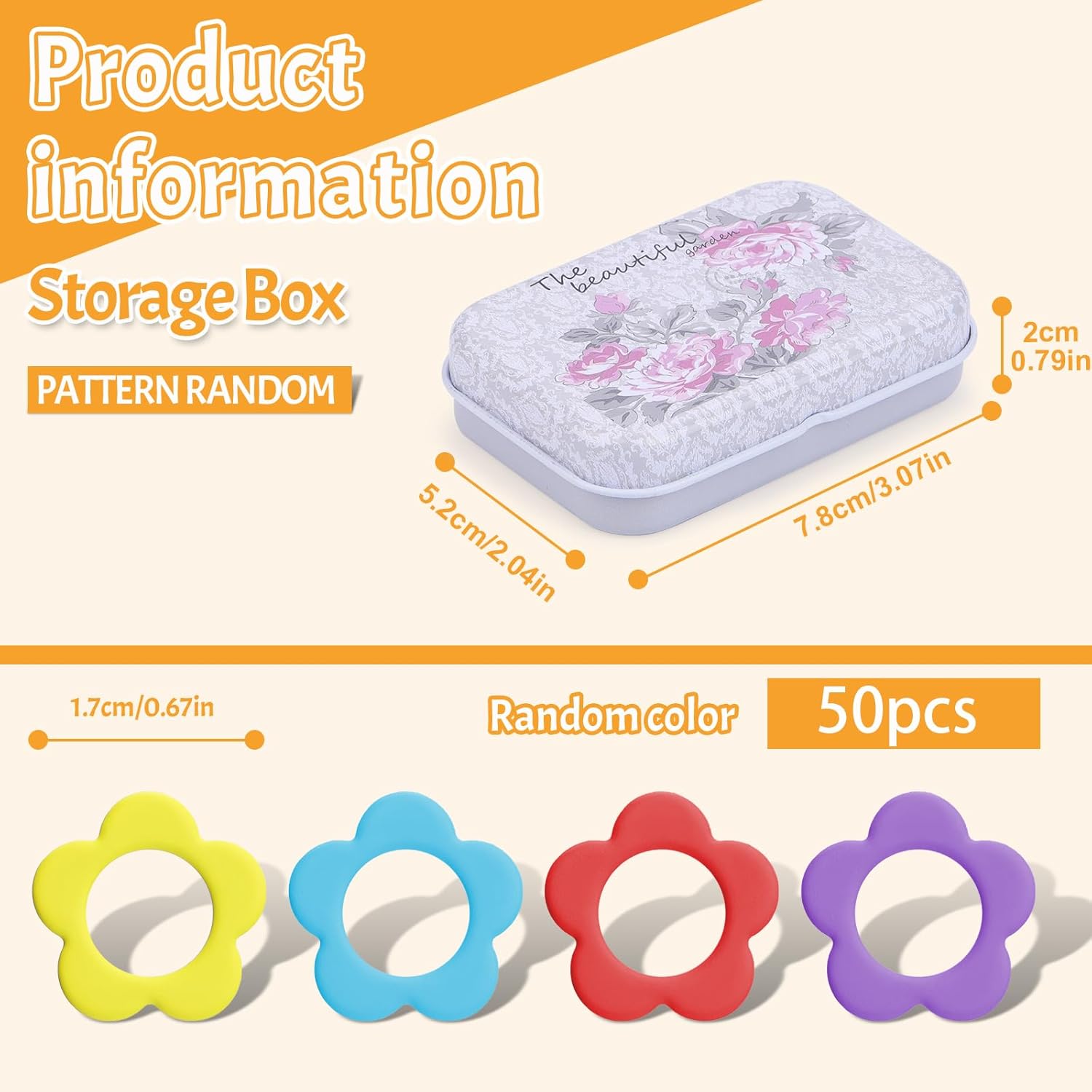 Jmuiiu Flower Metal Stitch Markers, 50Pcs Metal Colorful Crochet Stitch Markers for Knitting Crocheting Clothing Tag DIY Craft Project with Storage Box