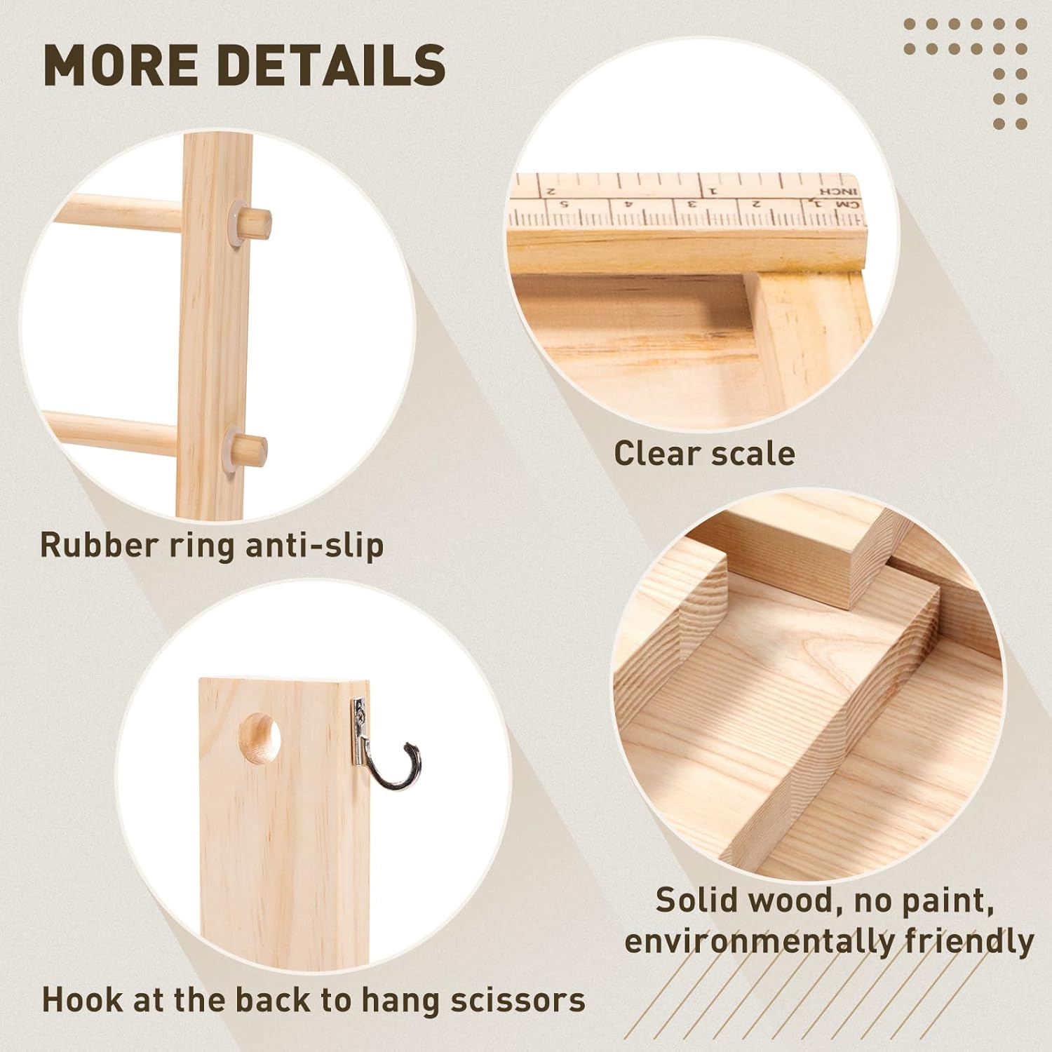 - 【INTIMATE DESIGN】 Printed ruler in the front, convenient for measuring, 2 hooks on the back of both side boards for hanging tools such as scissors, 8 rubber rings on the outside of the spindles to prevent slipping.