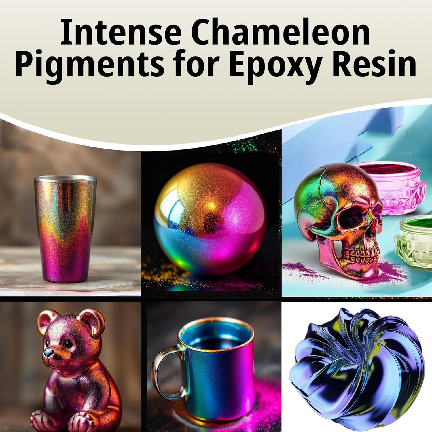 - 💜 HYPERSHIFT CHAMELEON MICA POWDER FOR EPOXY RESIN - artists choice of chameleon powders when it comes to Epoxy Resin Arts & Crafts. Mica pigment is perfect for Epoxy Resin, Tumblers Making, Paintings, Epoxy Jewelry, giving you a joy to work with. Also works well as automotive pigment, they are perfect as auto paint!