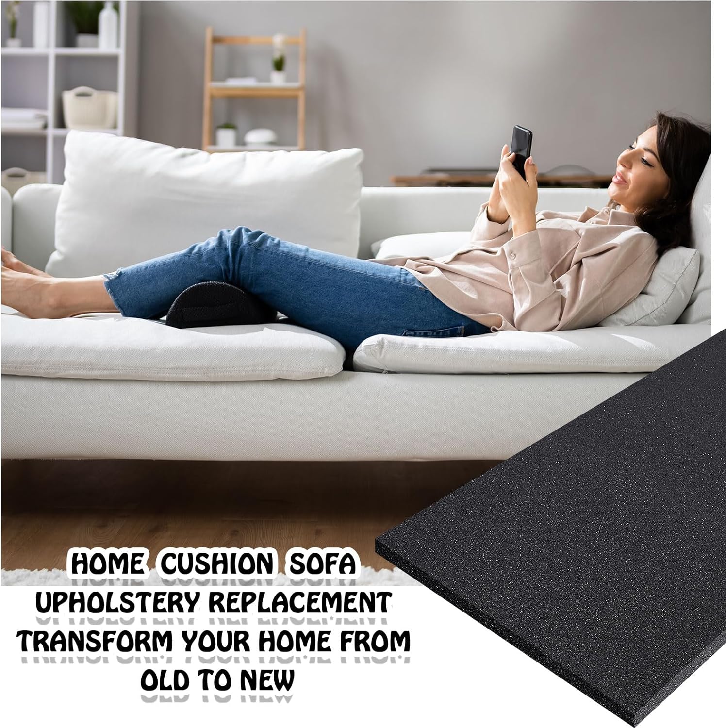 Amylove Polyurethane Foam 24" x 72" High Density Cushion Upholstery Foam Sheet for Seat Replacement DIY Projects Chairs Headboards Sofas Home(1" x 24" x 72",Black)
