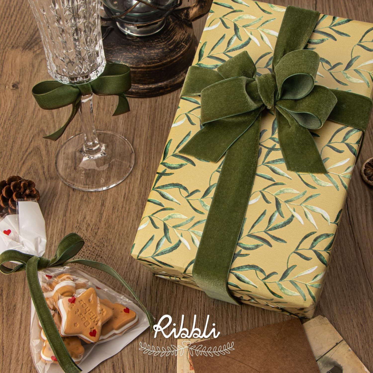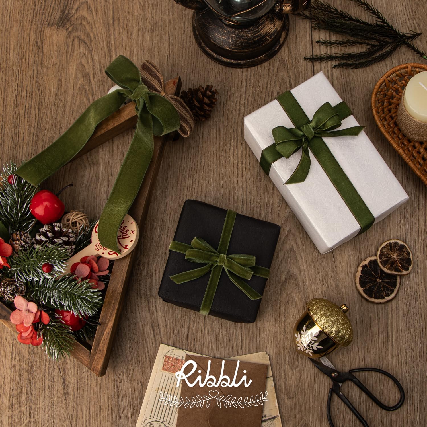 Ribbli Polyester Moss Green Velvet Ribbon,5/8 Inches Continuous10-Yard Spool,Christmas Ribbon for Gift Wrapping,Floral Bouquets, Home Decor