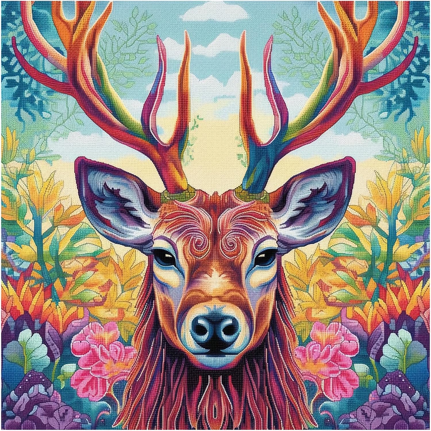 51buyoutgo 11CT Stamped Cross Stitch Kits for Adults - 16x16 in Beginner Embroidery Kit with Easy Funny Washable Animal Deer Pattern, Pre Printed Fabric, Fit for DIY Home Decor, Gifts & Stress Relief