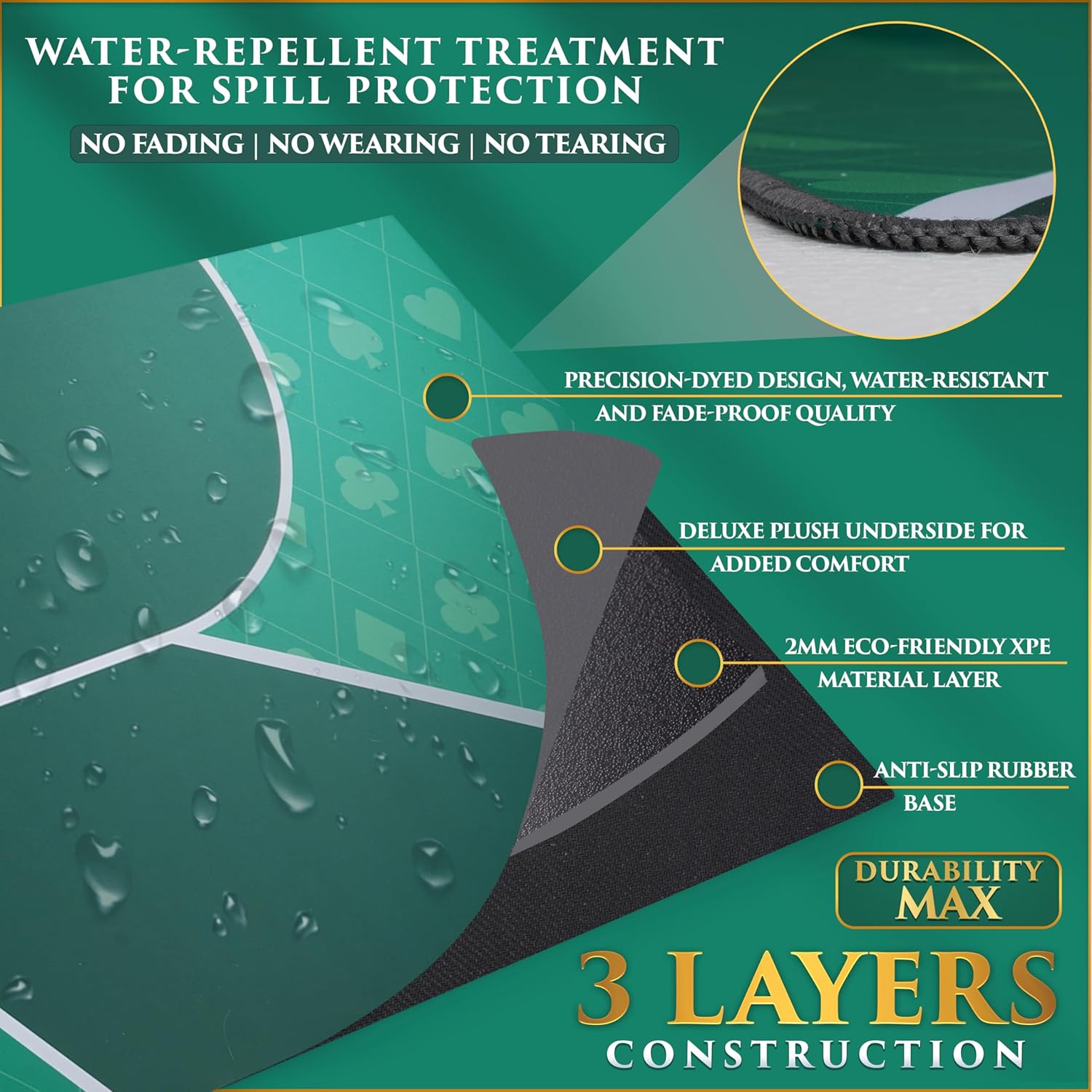 - STITCHED WITH PRECISION - Experience the difference in quality with our poker mat. From the stitching precision to the choice of materials, every detail is meticulously crafted to enhance your game.
