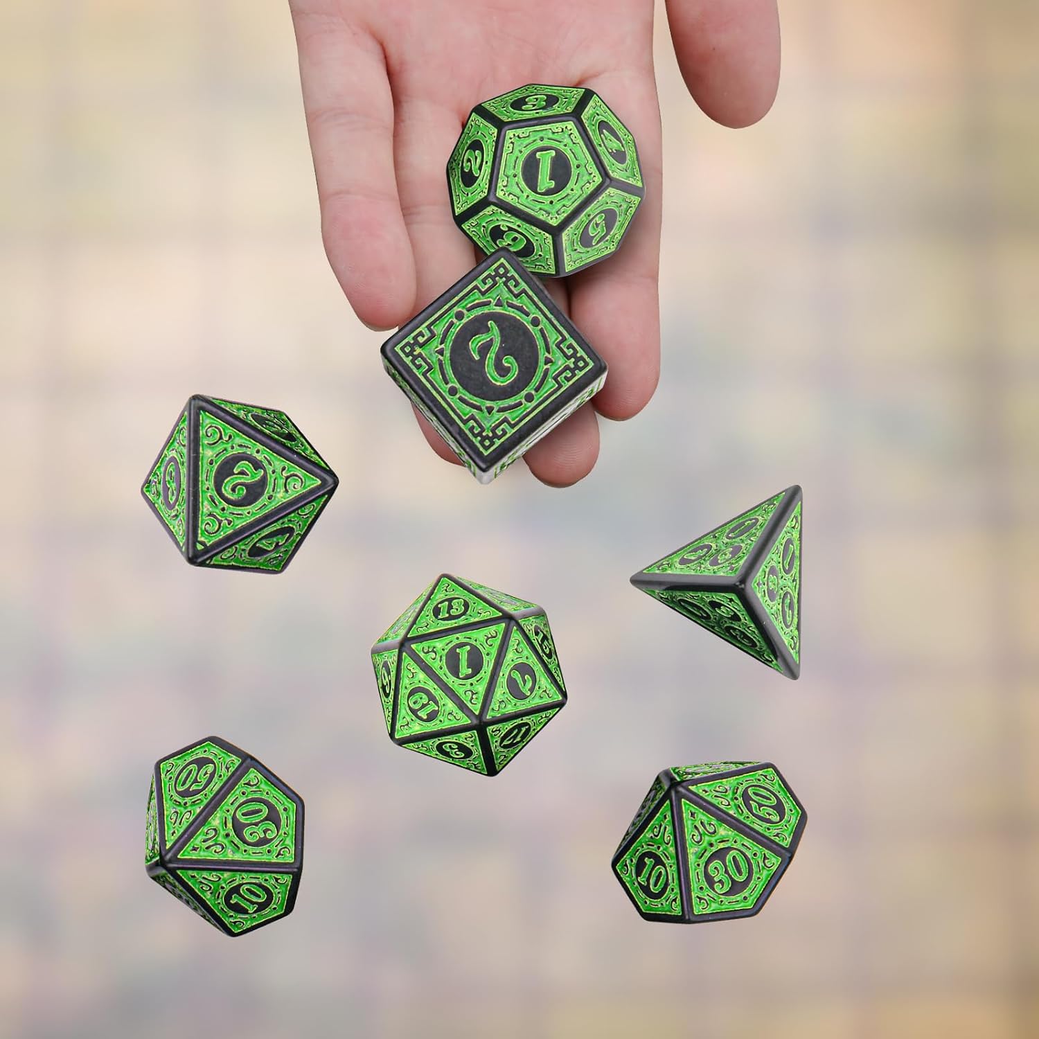 - 【Exquisite Design】: Retro carved design with black edges, larger than regular dice.
