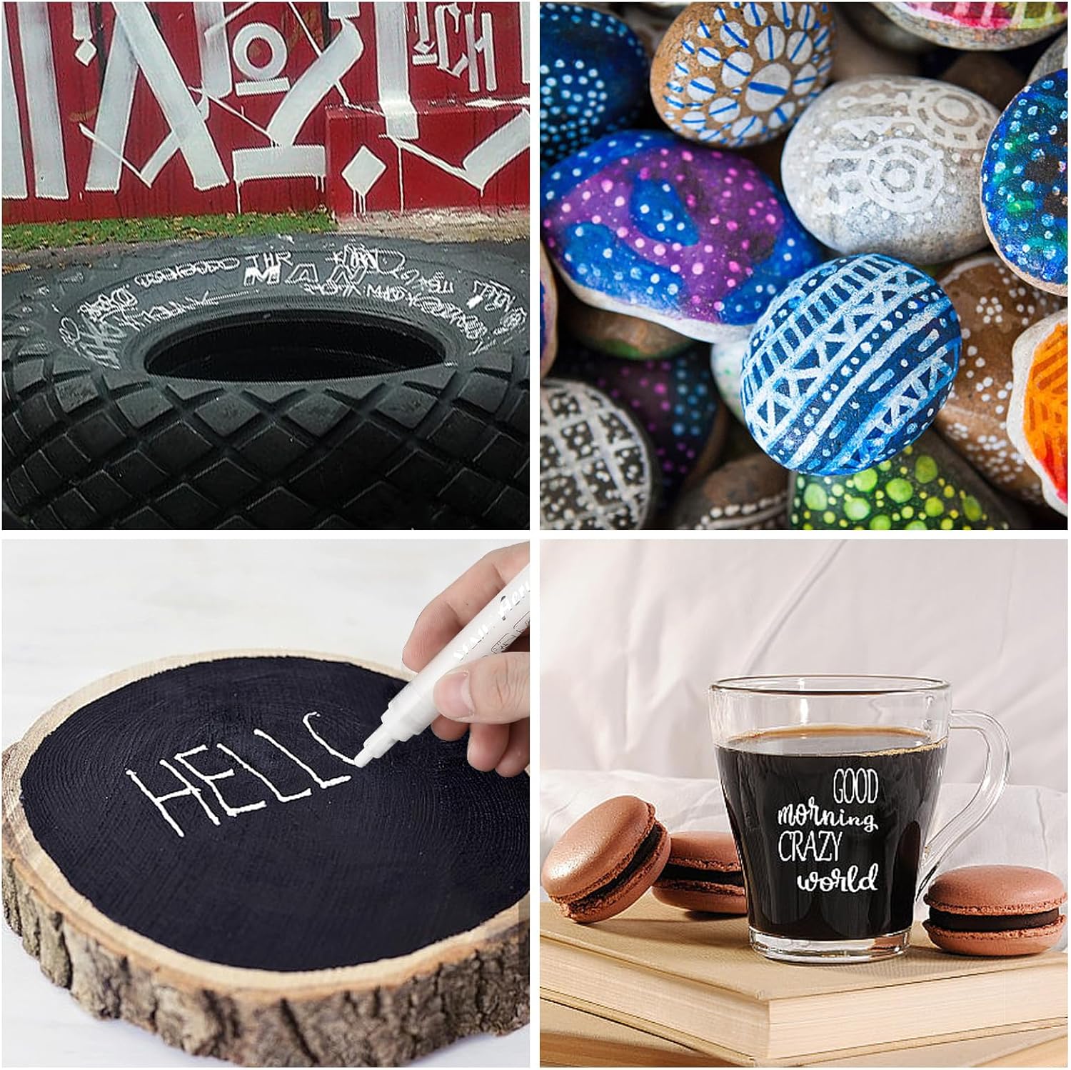 - Multi-Surface Mastery: Go beyond paper! These acrylic paint markers adhere brilliantly to canvas, wood, rock, ceramic, glass (non-food), metal, plastic, fabric (set with heat), and more. Ideal for artists, crafters, DIY enthusiasts, and customization projects.