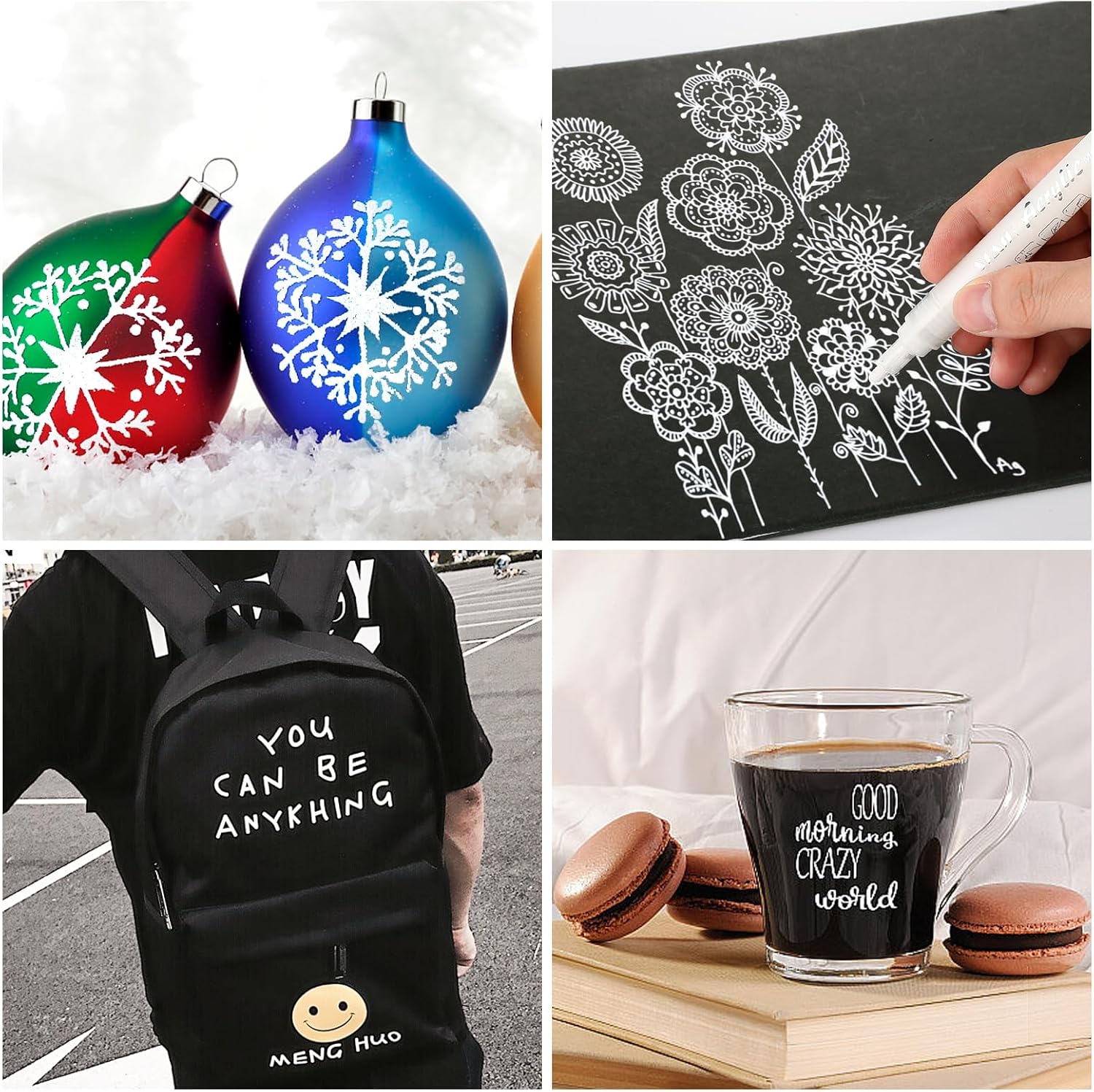 - Achieve Brilliant, Opaque White Coverage: These professional-grade acrylic markers deliver a highly pigmented, fast-drying white ink that provides excellent opacity and vivid color payoff on both light and dark surfaces, perfect for bold outlines, highlights, and solid fills.